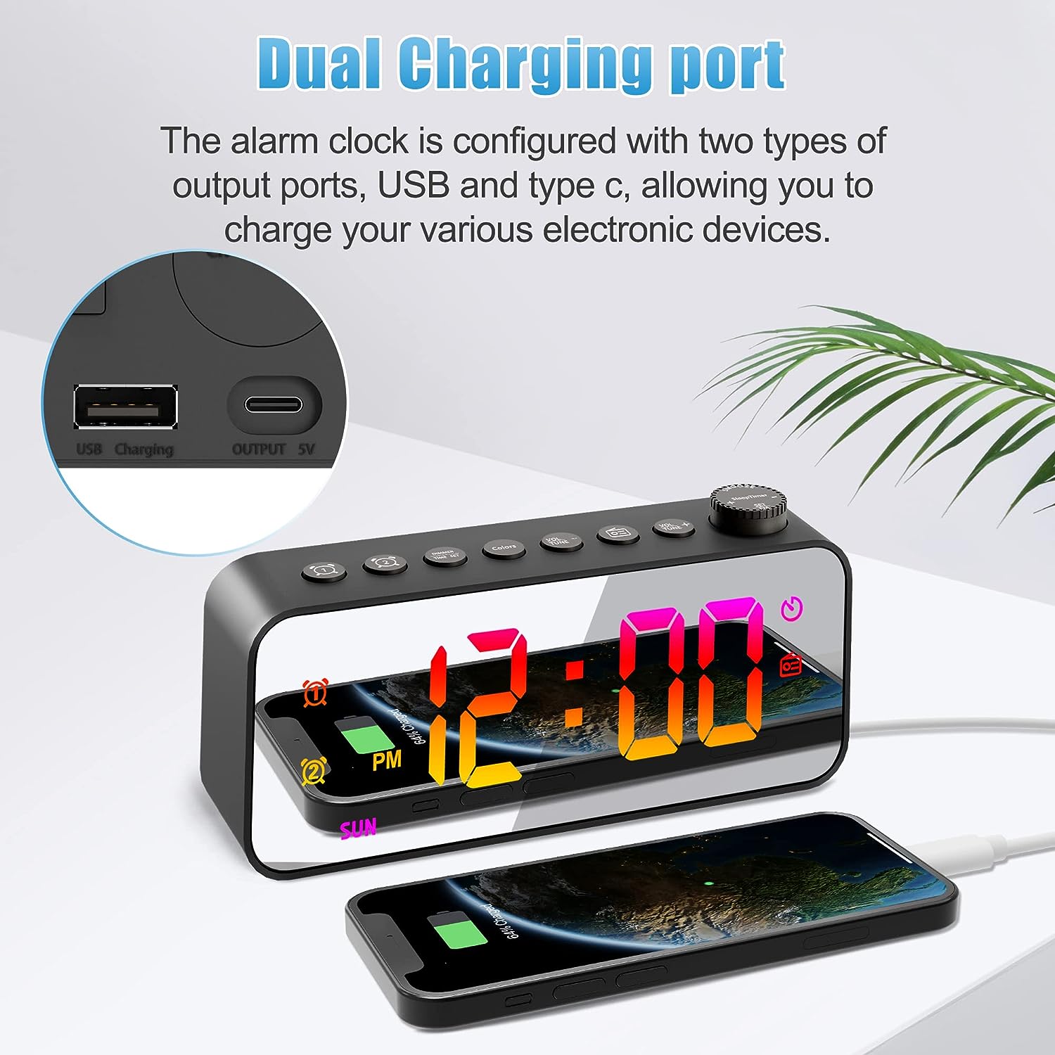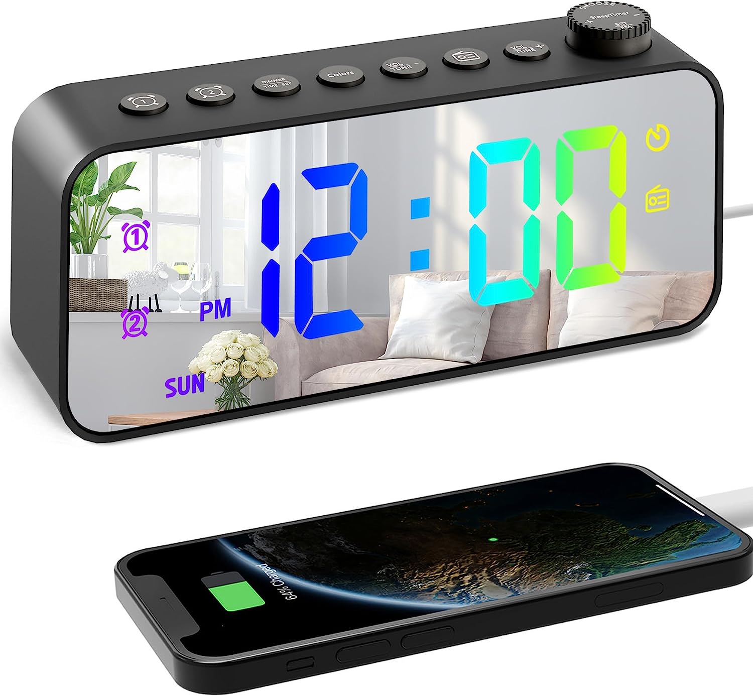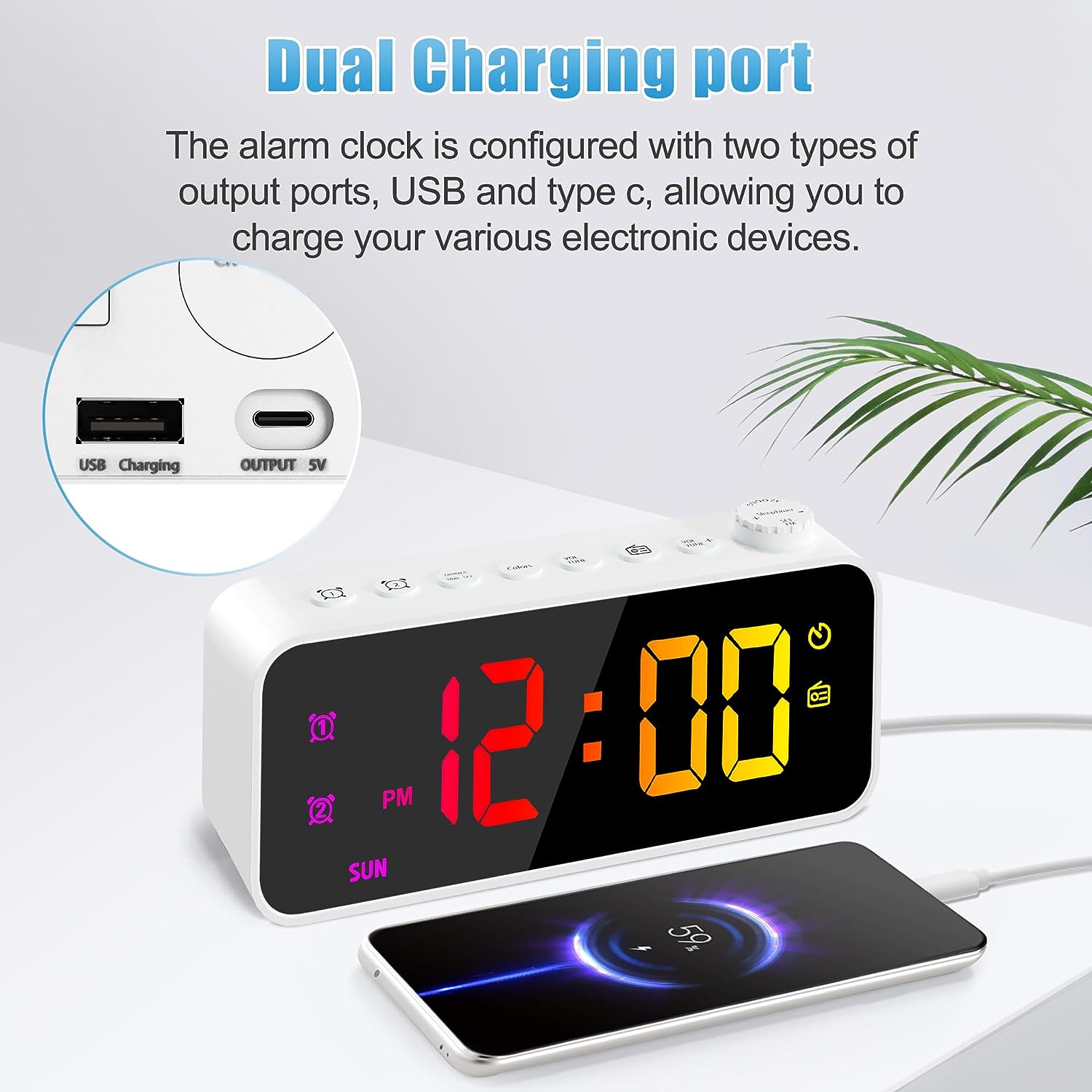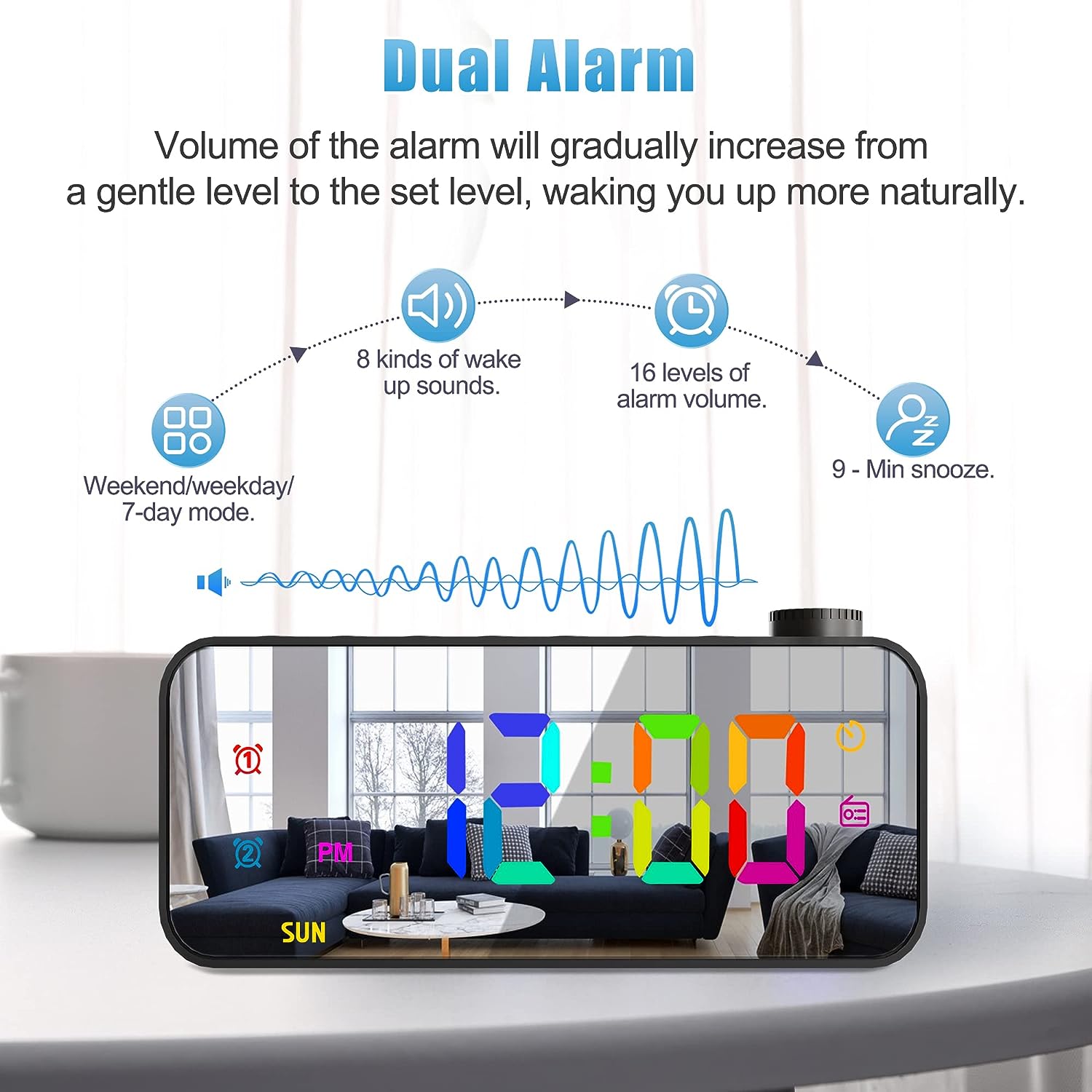 RGB Digital Alarm Clock Radio With Large Surface, Adjustable Brightness and Volume, Dual Alarm with Weekday/Weekend Mode, Snooze, FM Radio Sleep Timer, USB Charging Port, for Bedroom, Bedside(Black)