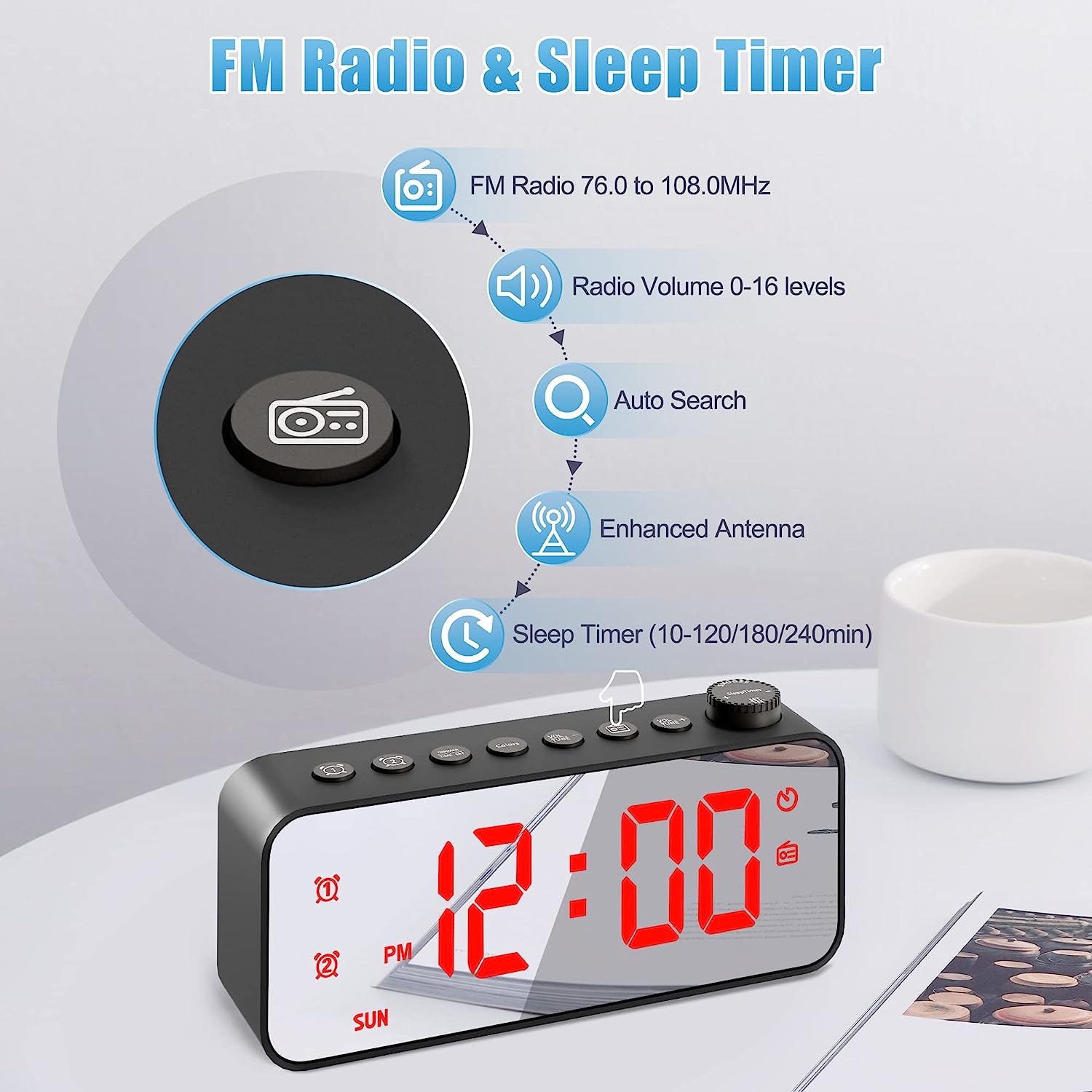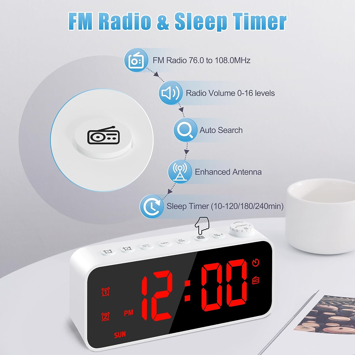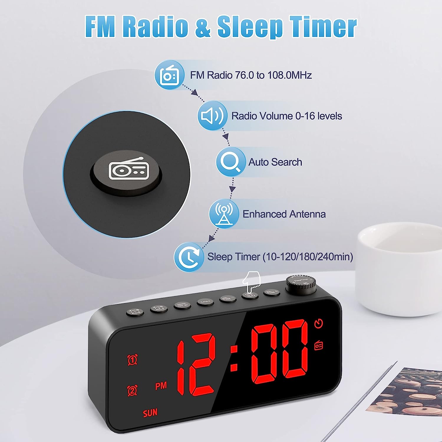• 【FM Radio And Sleep Timer】 The clock has an FM radio with multiple channels, as well as a sleep timer function (choose from 10-120/180/240 minutes) that lets you fall asleep with your favorite radio programs.