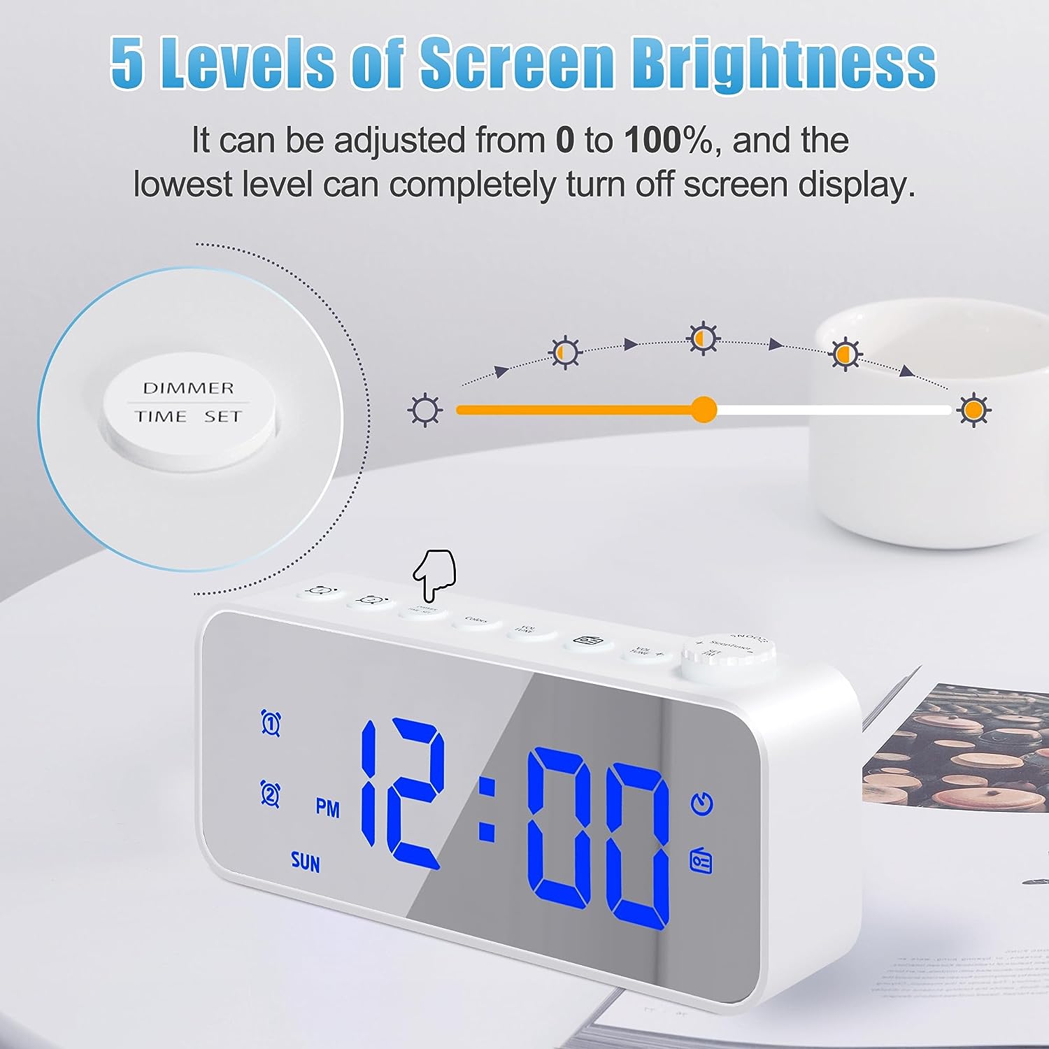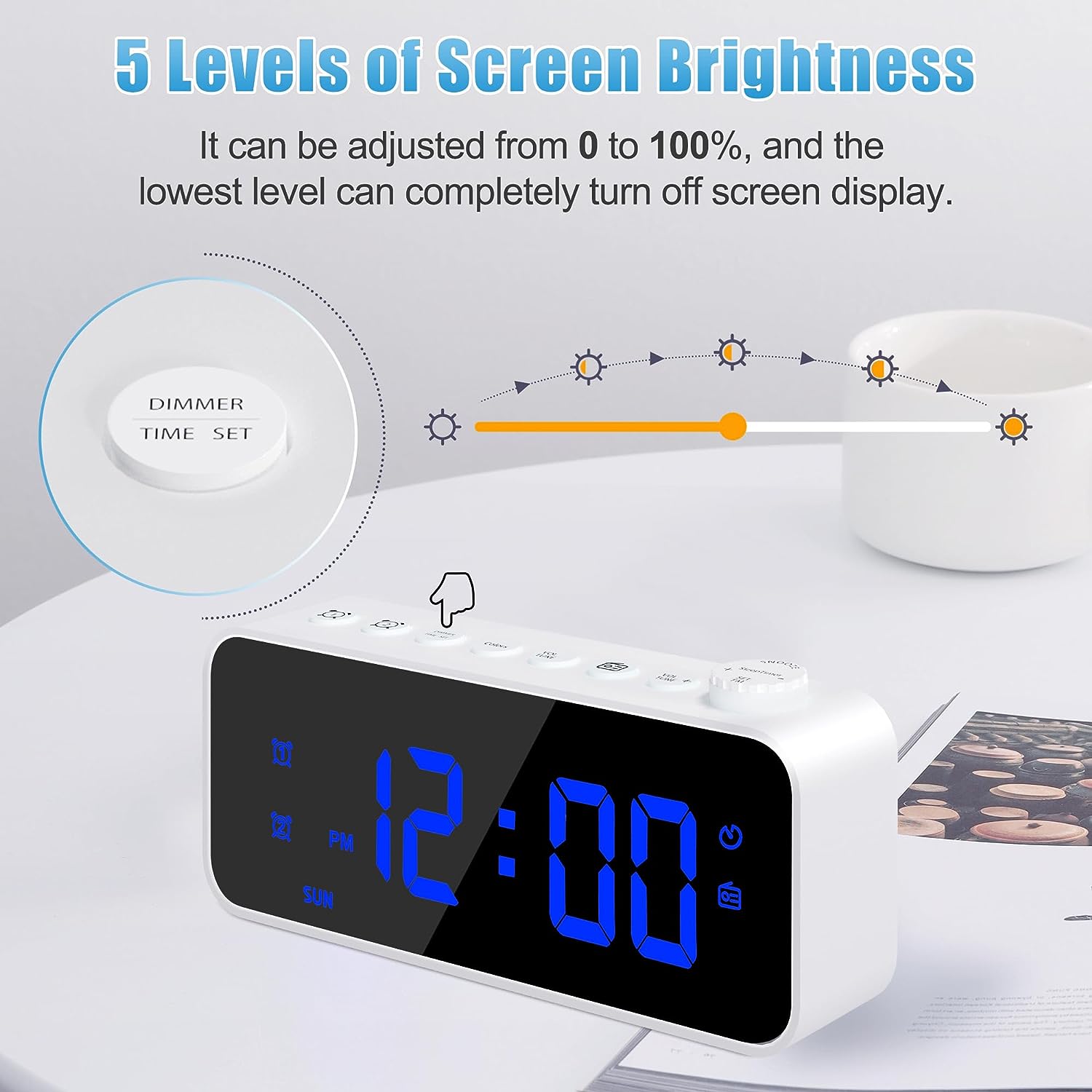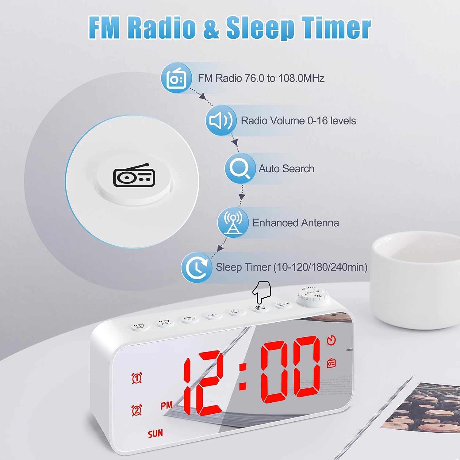 • 【FM Radio And Sleep Timer】 The clock has an FM radio with multiple channels, as well as a sleep timer function (choose from 10-120/180/240 minutes) that lets you fall asleep with your favorite radio programs.