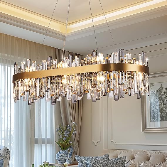 16-Light Modern Crystal Chandeliers, 35.4" Brass Gold Rectangular Raindrop Chandelier, Luxury Oval Pendant Light, 2-Tiers Rectangle Chandelier for Dining Room, Kitchen Island, Living Room