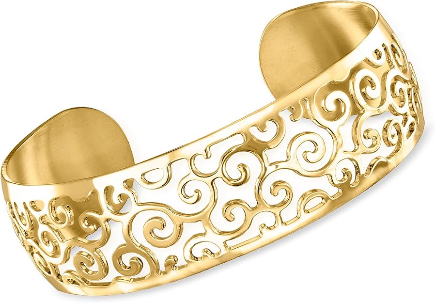 Ross-Simons Italian 18kt Gold Over Sterling Filigree Swirl Cuff Bracelet. 7 inches