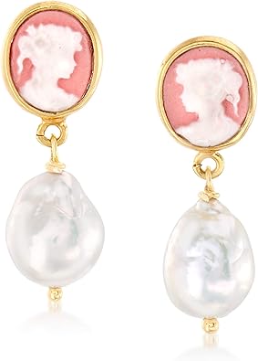 Ross-Simons Italian 9-10mm Cultured Pearl Cameo Drop Earrings in 18kt Gold Over Sterling