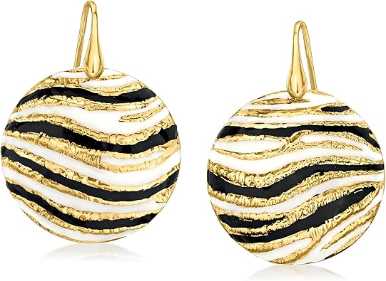 Ross-Simons Italian Black and White Enamel Disc Drop Earrings in 18kt Gold Over Sterling