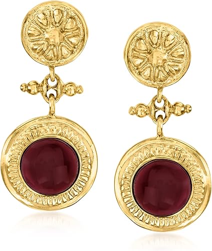Ross-Simons Italian Garnet Floral Drop Earrings in 18kt Gold Over Sterling