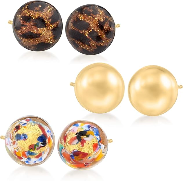 Ross-Simons Italian Multicolored Murano Glass and 18kt Gold Over Sterling Jewelry Set: 3 Pairs Of Stud Earrings