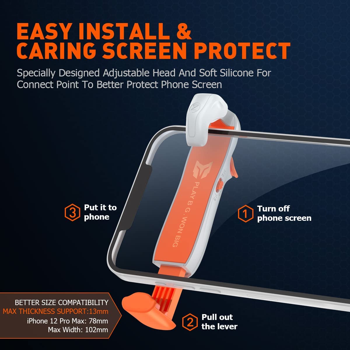 • 【Devices and Games Supported】JET gaming trigger supports both of iOS and Android phones with the screen size between 4.7-6.5 inches. The maximum width of the stretch lever reaches 90mm and the thickness to 13mm. Game aim trigger is compatible with PUBG Mobile, Fortnite, Call of Duty Mobile and more other shooting mobile games. *Please take off the phone case and lock screen before using.
