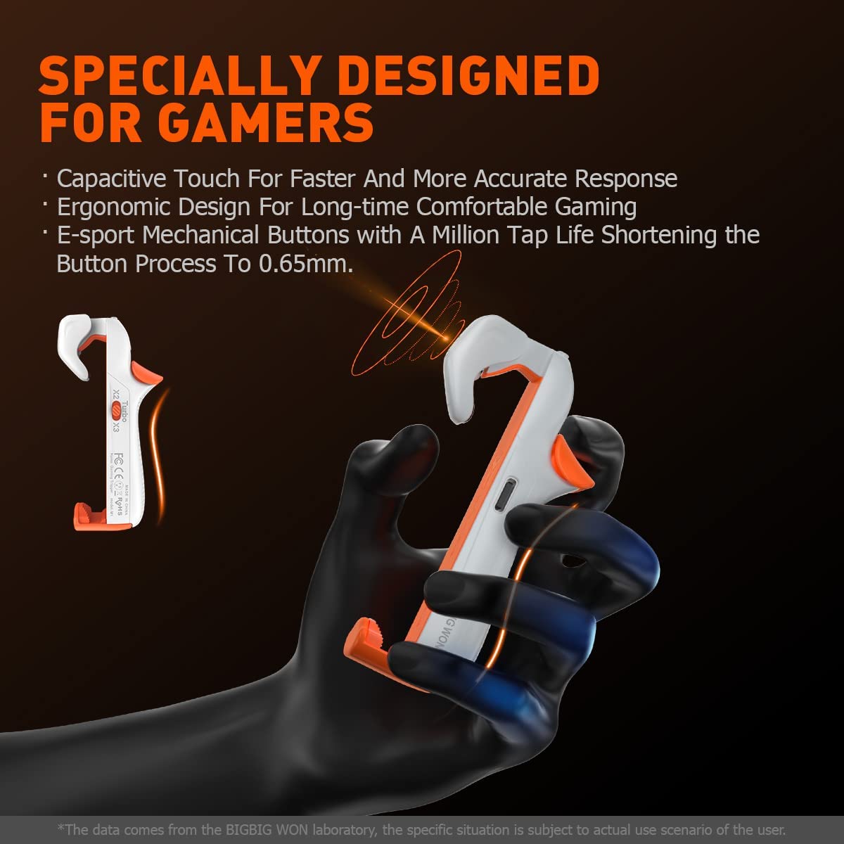 Mobile Triggers, BIGBIG WON Mobile Gaming Trigger for PUBG/Fortnite/Call of Duty Sensitive Shoot and Aim Phone Trigger for iPhone and Android Phone Within 6.5 Inches Game Trigger White (1 Piece)