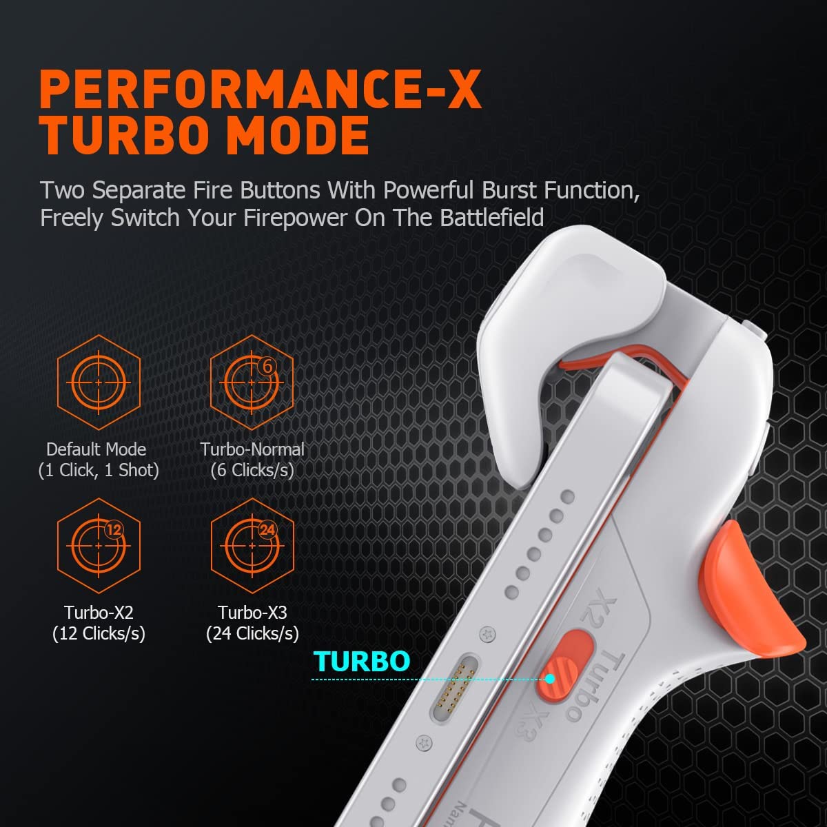 • 【Powerful Features】PUBG mobile controller owns PERFORMANCE-X MODE turbo function that lets you enjoy the rampant double & triple firepower. Brand-new recording mode freely customizes your own fire rhythm according to different gaming status. Built-in mini linear motor provides every fantastic vibration feedback and allows you to experience immersive gaming. New-gen capacitive mapping provides you more sensitive touch response with ultra-low latency, and up to million times pressing life time.