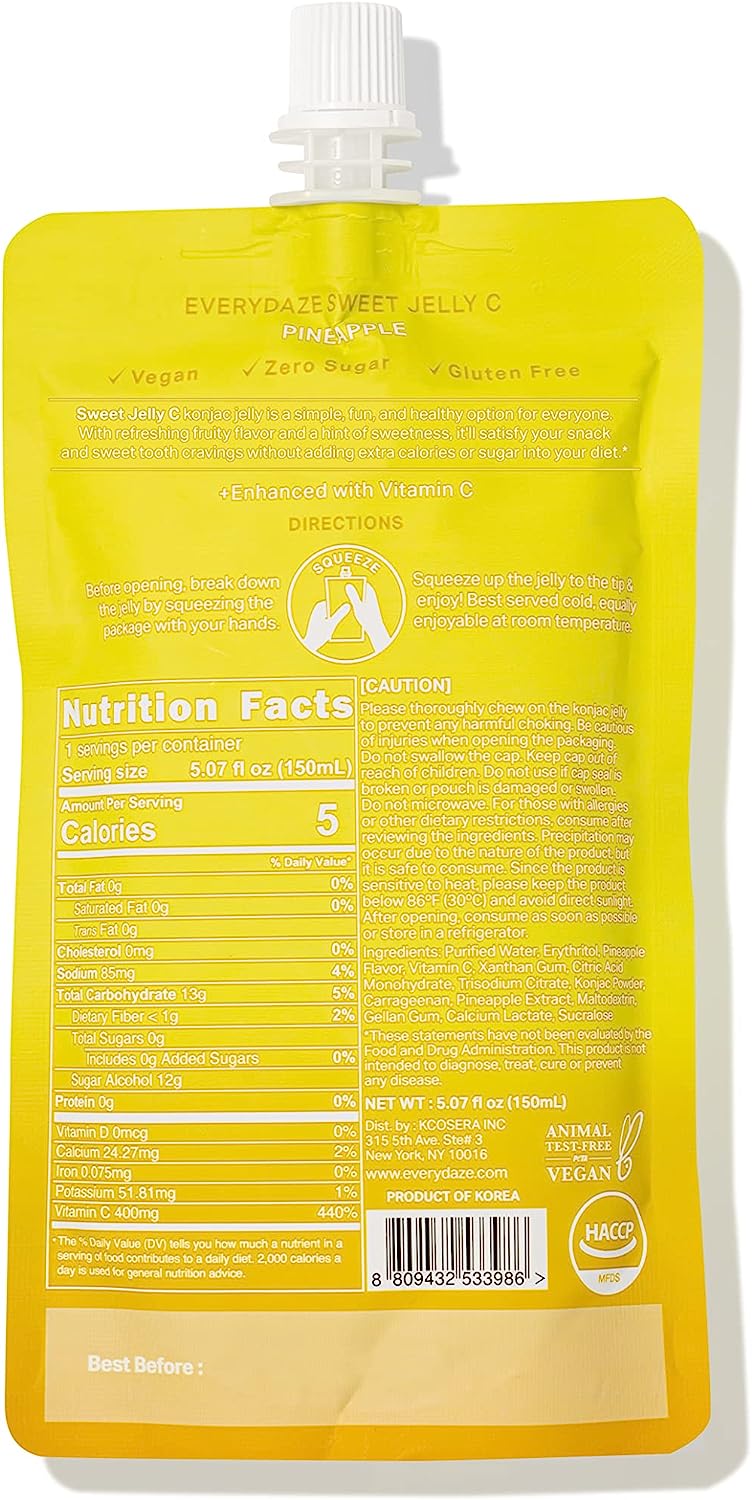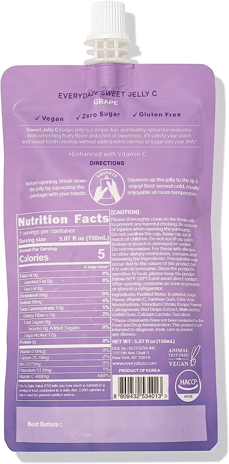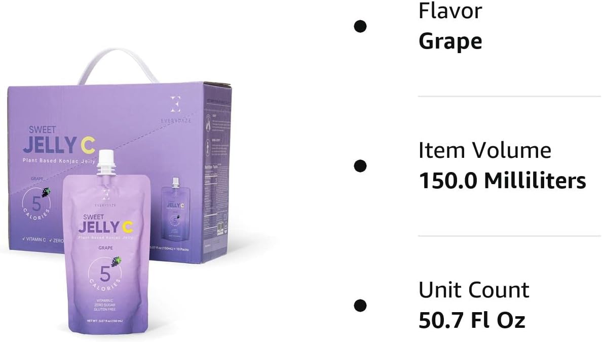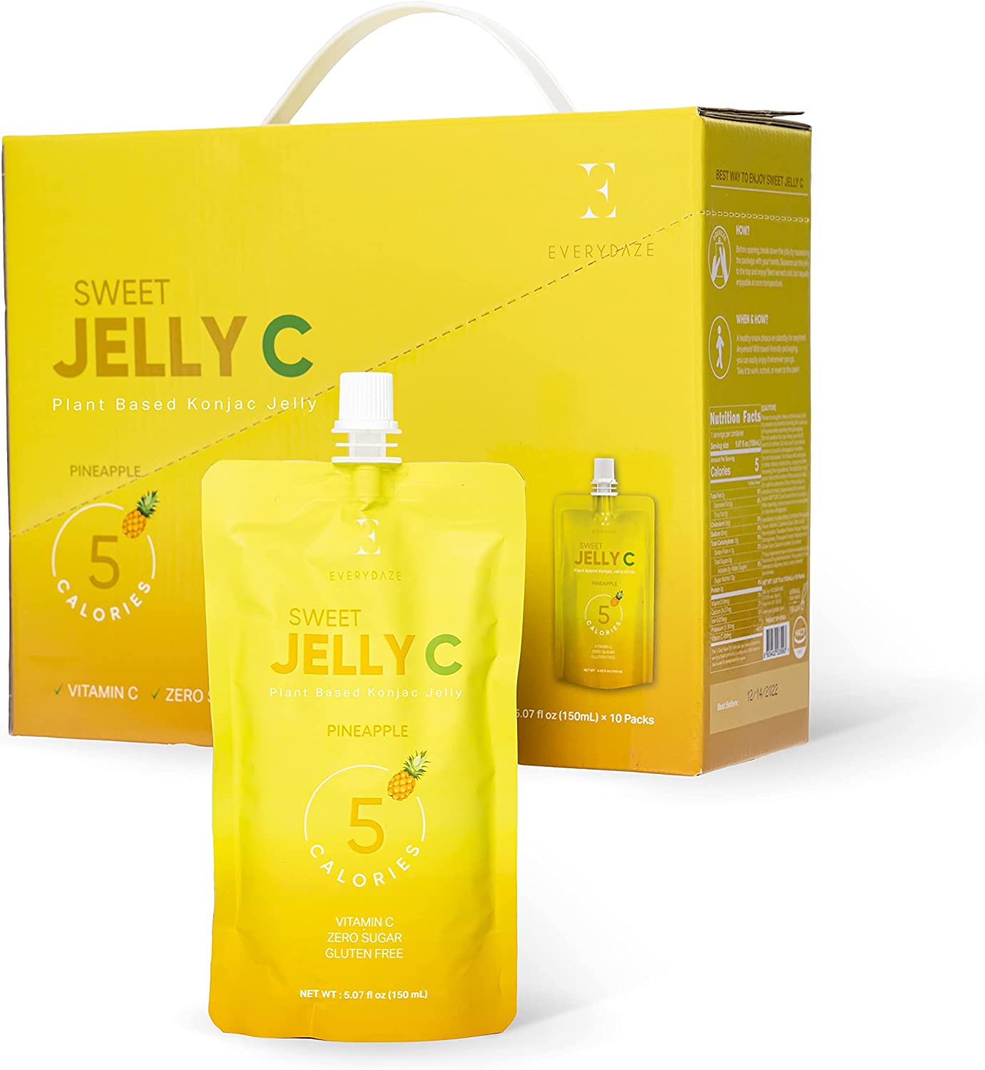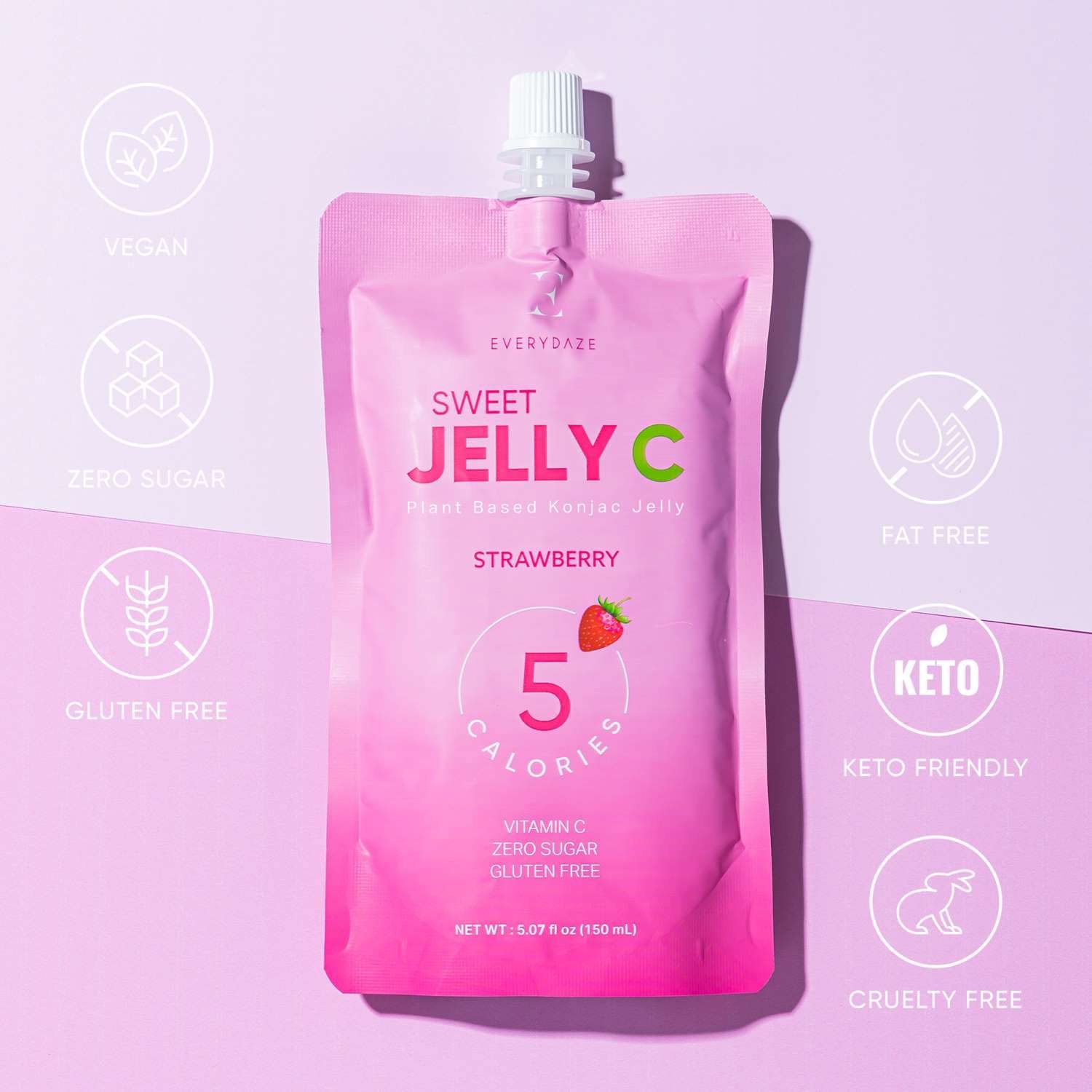 EVERYDAZE Sweet Jelly C Konjac Jelly | Vitamin C, Vegan, 5 Calories, 0 Sugar | Strawberry | 10 Packs | Keto, Gluten Free, Healthy Diet Pouch Drinkable Snack, Weight Management, Low Calorie