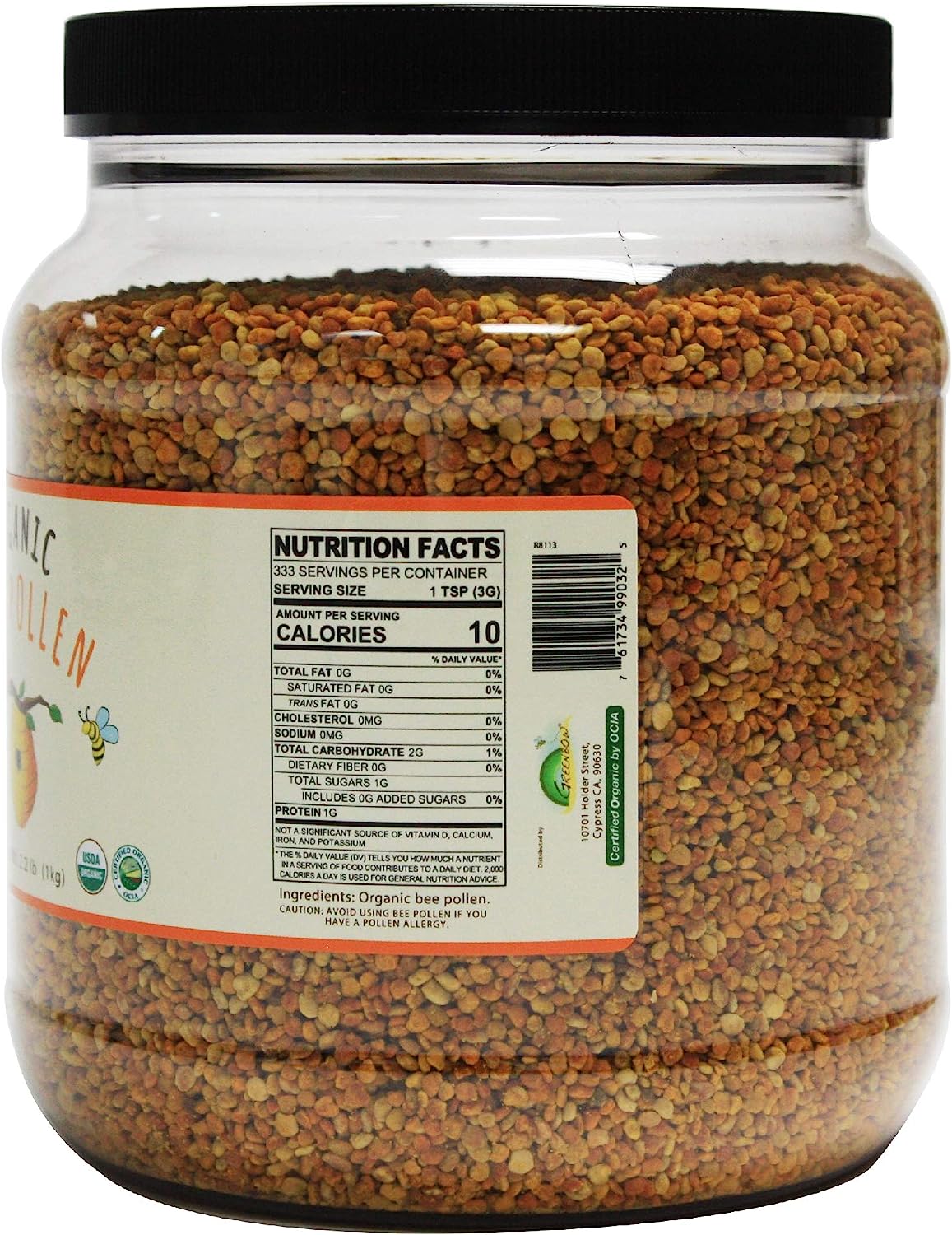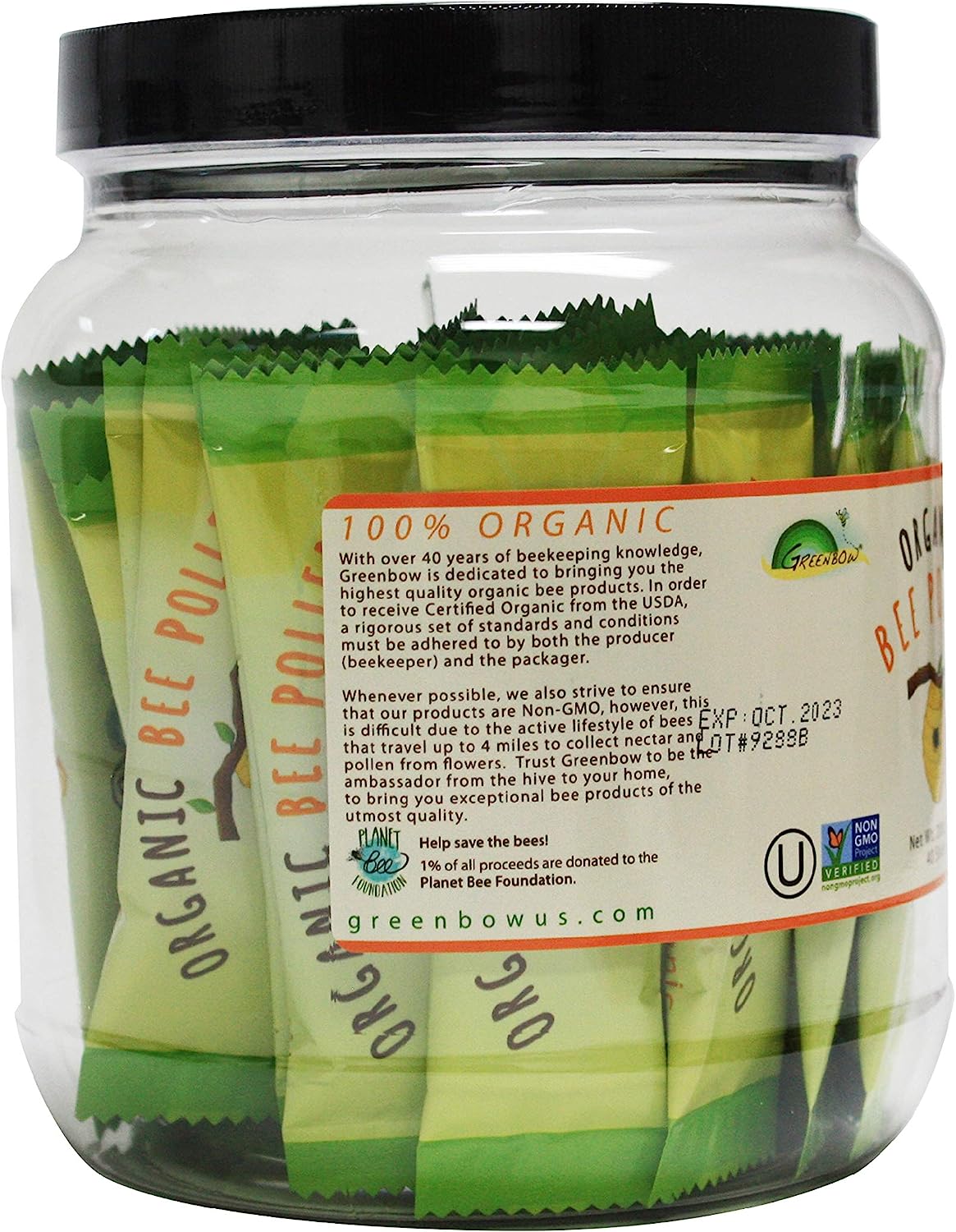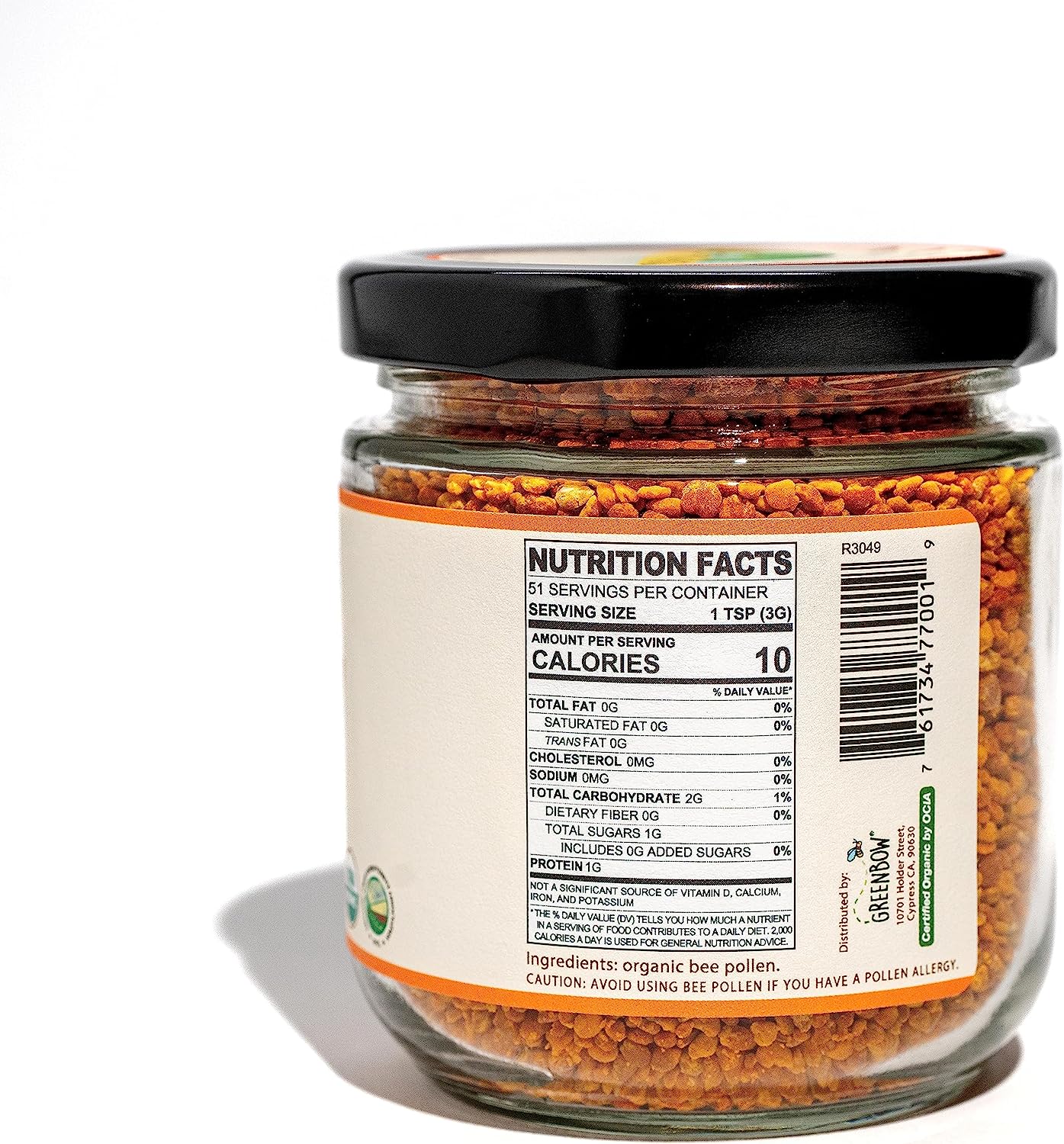 Greenbow Organic Bee Pollen - 100% USDA Certified Organic, Non-GMO, Pure, & Natural Bee Pollen - Superfood Packed with Proteins, Vitamins & Minerals - Kosher Certified, Gluten Free -155g x 2 Jars