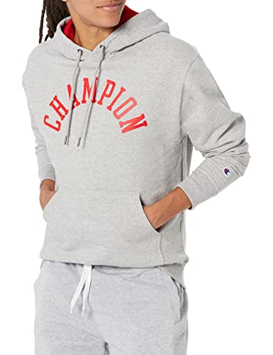 Details: FROM AM TO PM. Wherever, whenever – get there in powerhouse comfort. Crafted with our signature Powerblend® Fleece, this men's hoodie has a soft, brushed interior for warmth without weighing you down. Expertly designed, high-quality cotton blend fabrication helps to reduce pilling and shrinkage, so this piece can be a longtime favorite. Double-layer hood and classic ribbed details on this standard-fit men's sweatshirt work hard and play hard. Iconic branding delivers the recognizable style you love. Pair this hoodie with your best Champion joggers for a stand-out look.