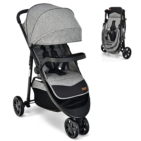 HONEY JOY Jogging Stroller, Running Stroller for Toddlers, Off Road Hiking Stroller, Easy One-Hand Fold, Adjustable Backrest/Canopy, Storage Basket, Baby Jogger Stroller for Infants Boys Girls (Gray)
