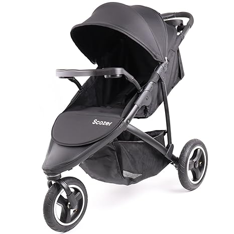 Jogger Stroller with Dining Plate and Cup Holder Big Storage Basket, Adjustable Awning, Variable Seat and Recliner Lightweight Baby Jogging Stroller, Black