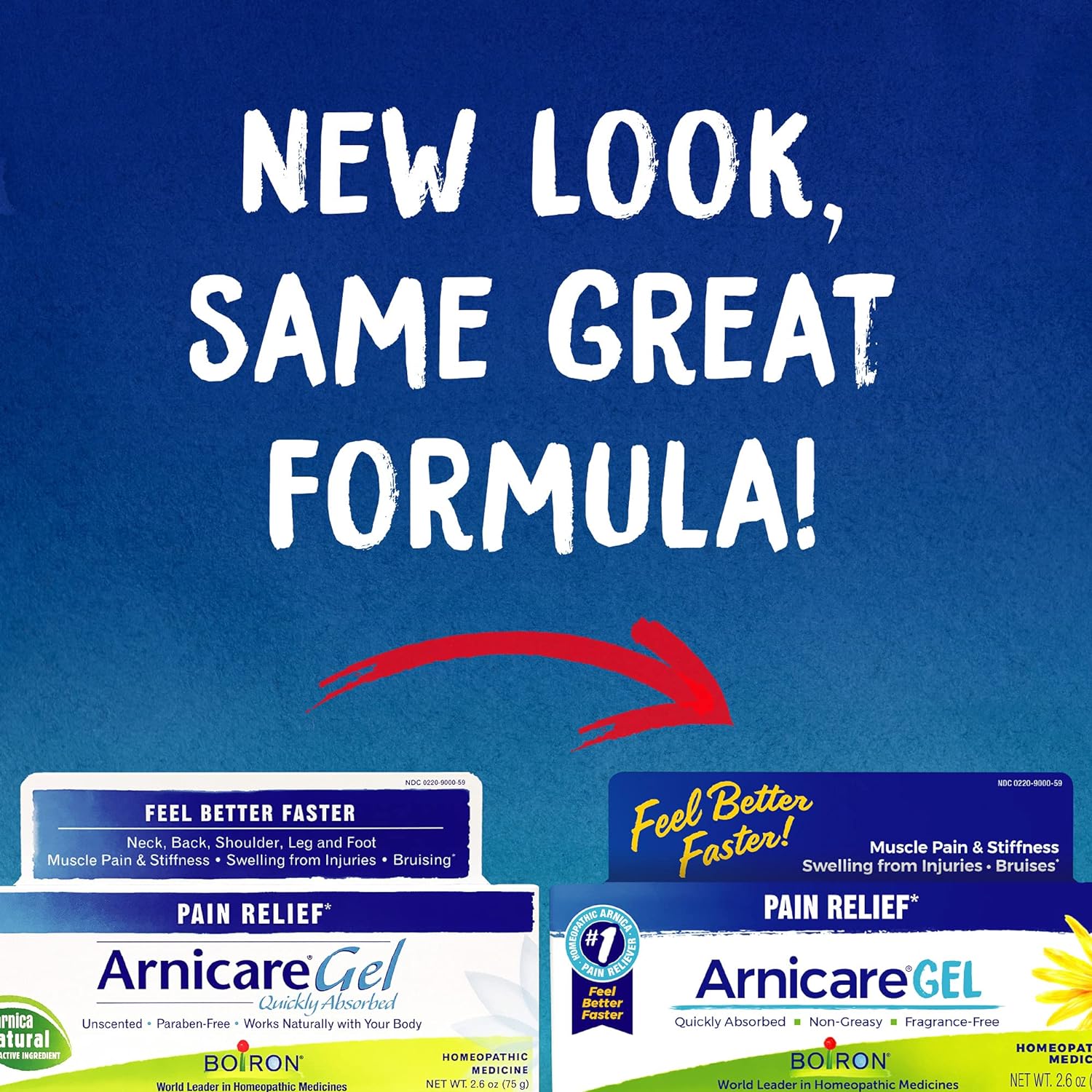 Boiron Arnicare Gel for Relief of Joint Pain, Muscle Pain, Muscle Soreness, and Swelling from Bruises or Injury - Non-greasy and Fragrance-Free - 2.6 oz (Horizontal)