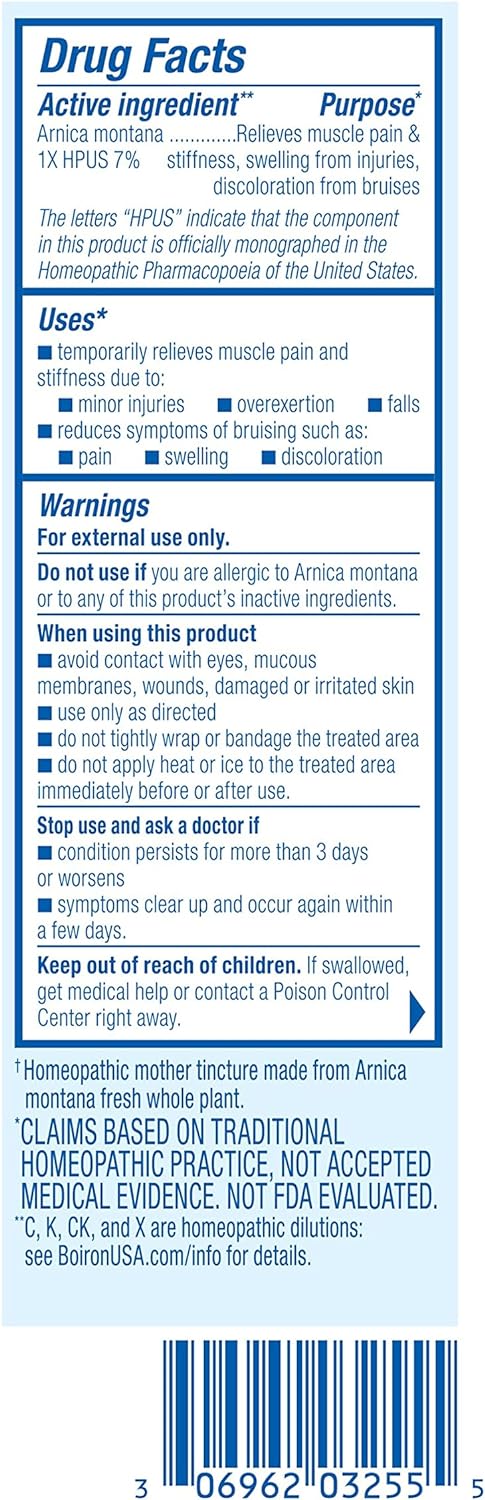 • PLANT-BASED ACTIVE INGREDIENT: The Arnica montana plant is a natural pain reliever. This popular homeopathic medicine temporarily relieves muscle pain & stiffness without unwanted drowsiness.