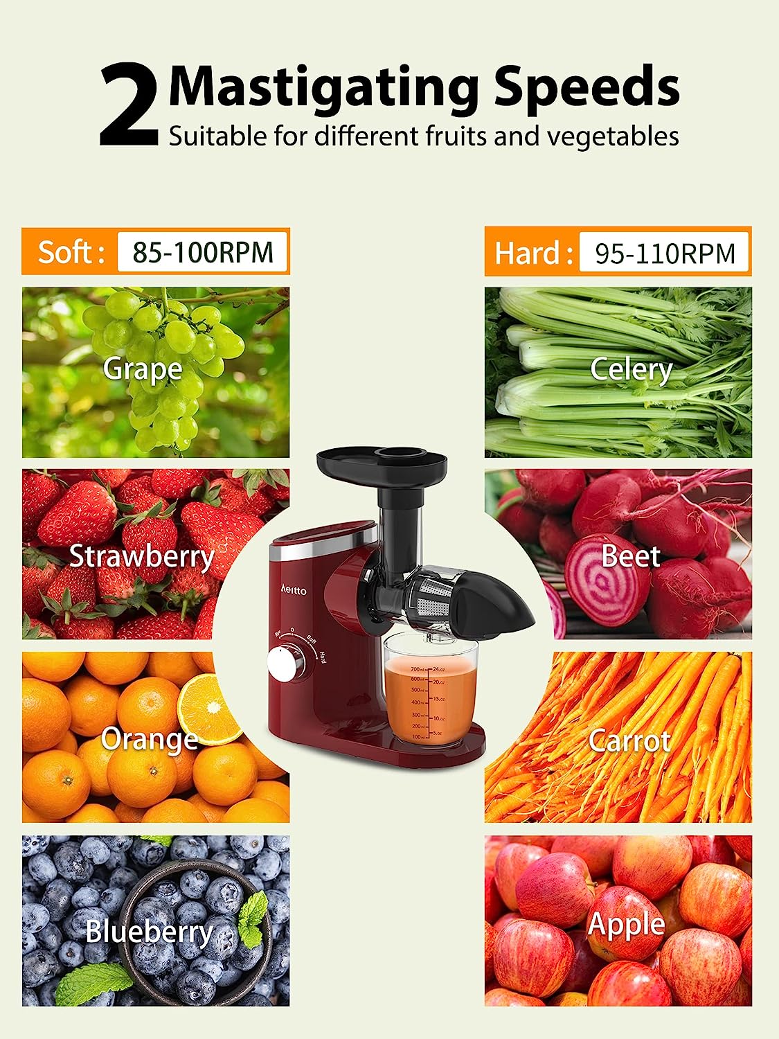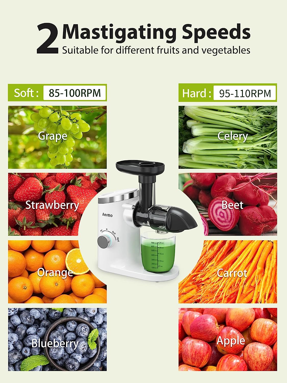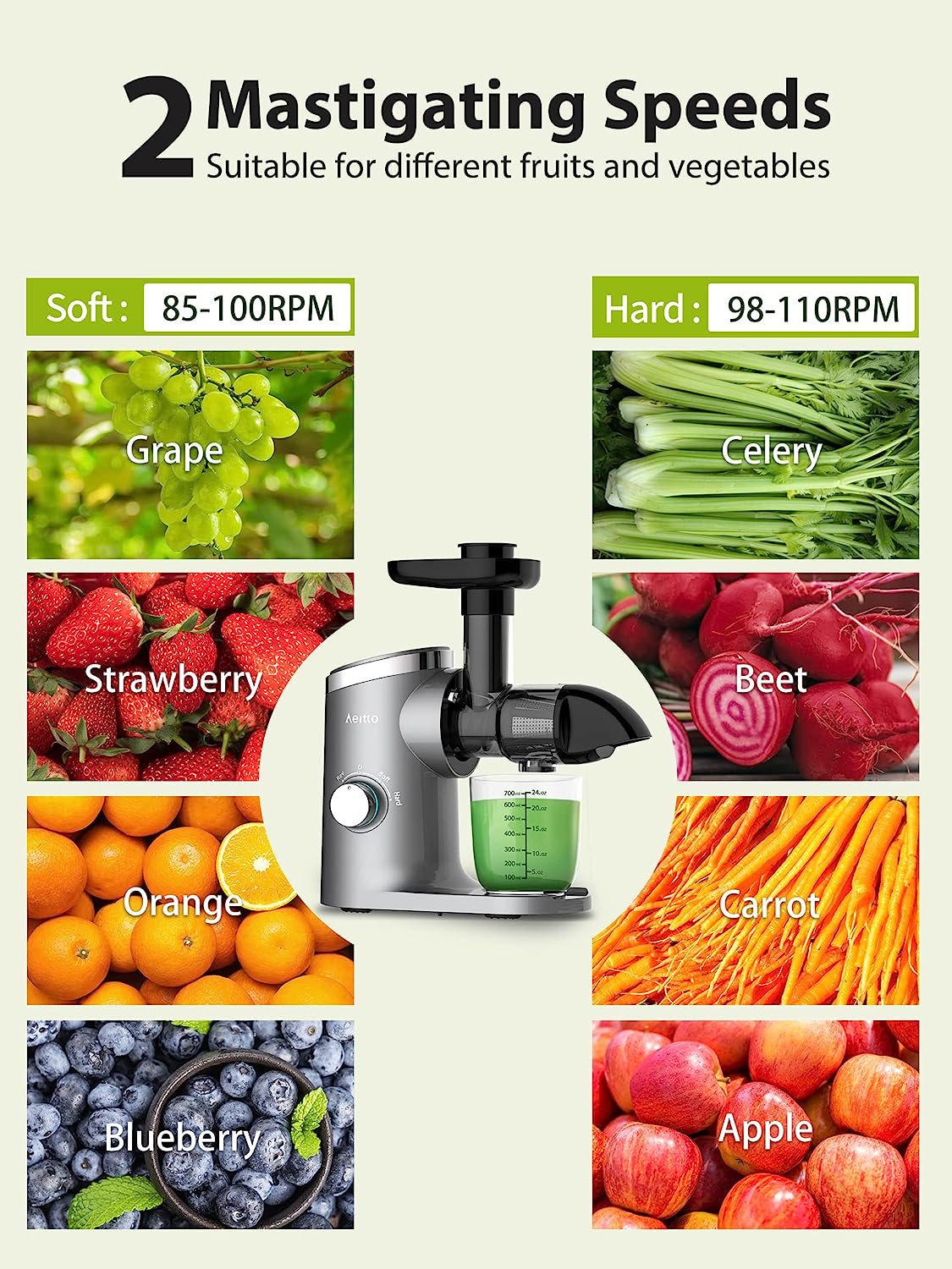 • ?【Aeitto Warranty Service】-We provide 12 months warranty services for the slow masticating jucier, please feel free to contact us if products have any problems. We promise to solve the problem for you.Aeitto specializes in providing buyers with high-quality small appliance products and best user experiences. ★ Accessories available for purchase.