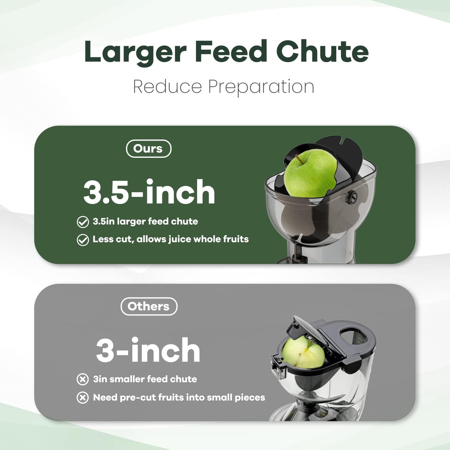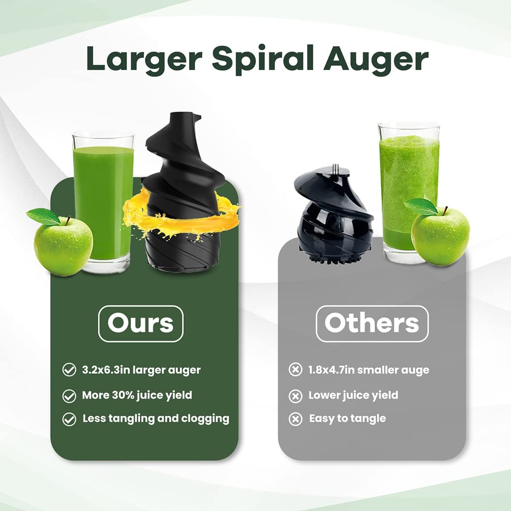 • 【Larger Spiral Auger】3.2x6.3 inch (80x160mm) large spiral auger can grind the pulp more fully, reduce machine tangling and clogging, reduce bubbles production, and increase juice extraction rate by 30%.