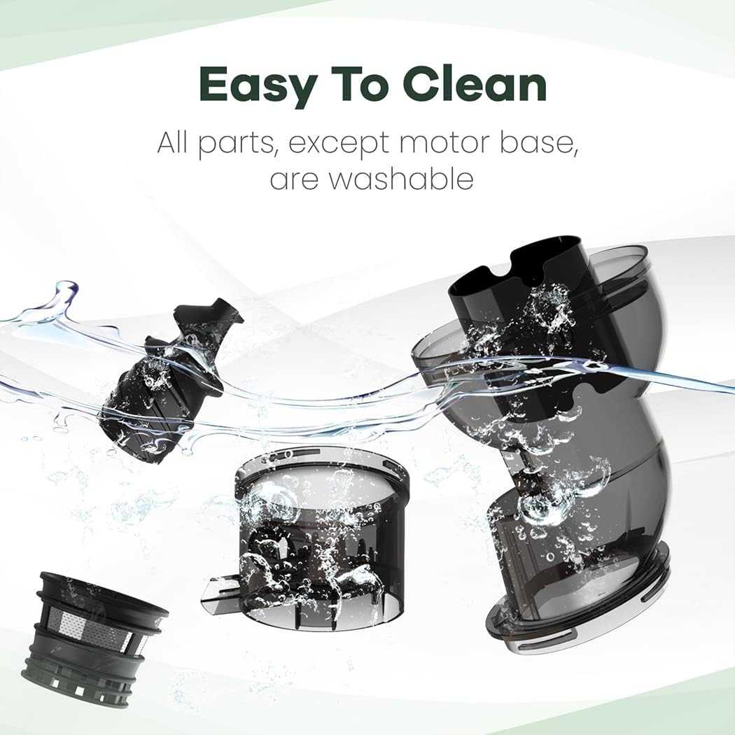 • 【Easy to Clean】Simple and quick disassembly design. All parts of the juicer, except the motor base, can be washed with water and dishwasherable. With the complimentary brush can be cleaned more efficiently.