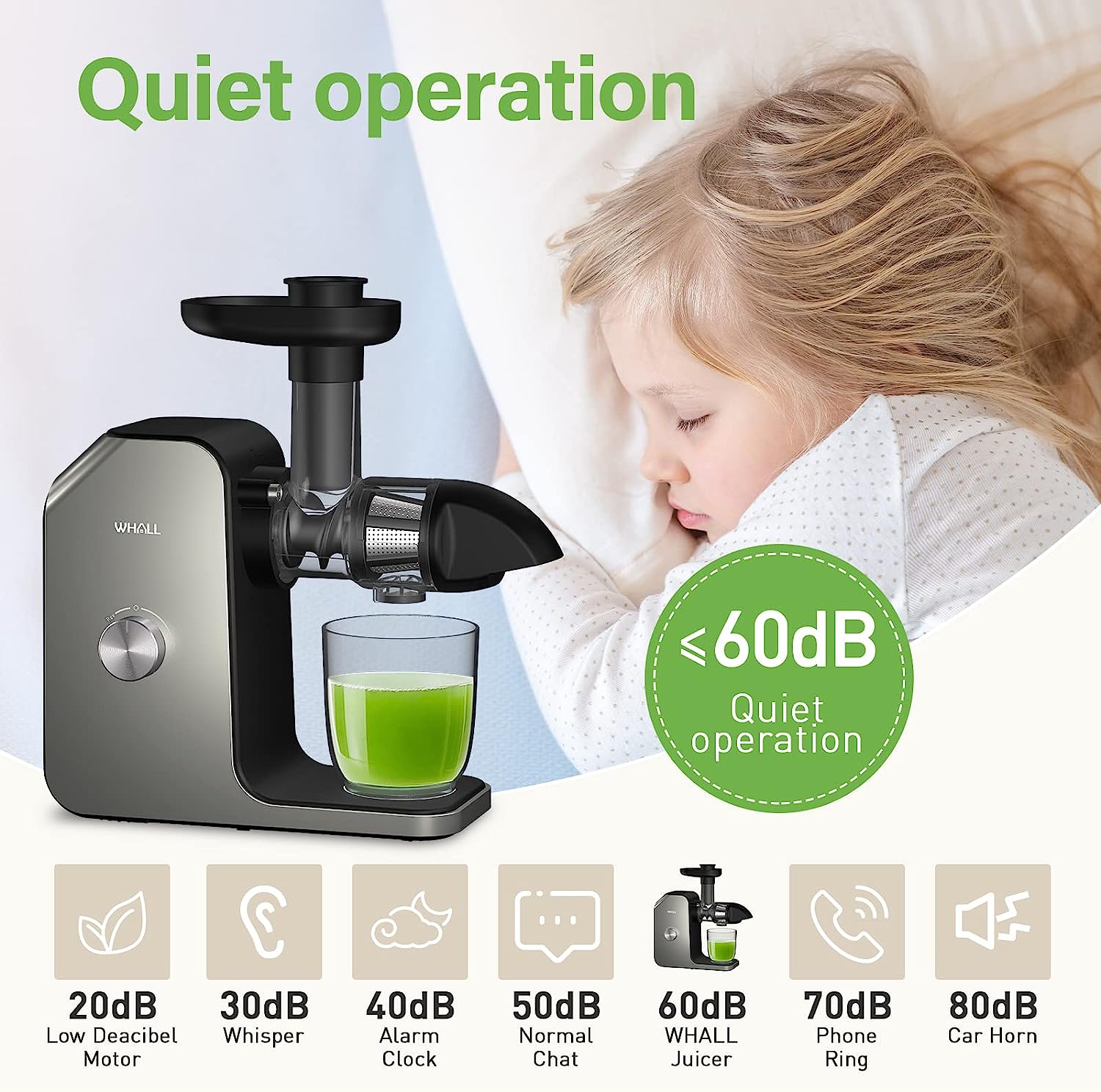 • 🍎[Easy to Disassemble and Clean]: WHALL Masticating Juicer is easy to assemble, allowing you to set it up quickly and save your time. By pushing the button on the juicer body, you can disassemble it in minutes. All removable parts are dishwasher safe and made of Food Grade Material. With the provided cleaning brush, it is easy to clean this juicer machine.