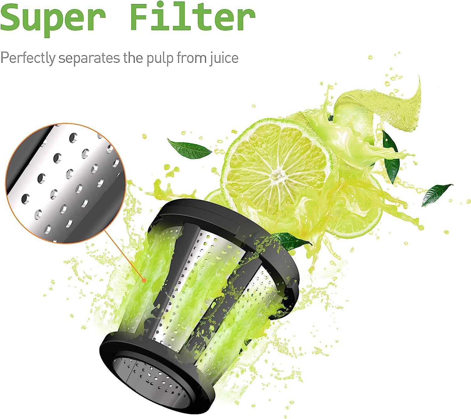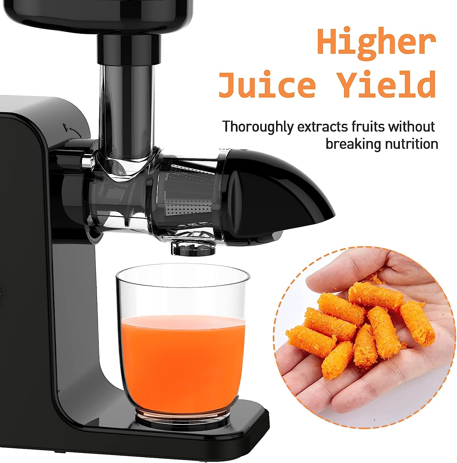 • 🥬[Powerful Auger & Reverse Function]: With cold press technology, this masticating juicier operates at a low speed, maximize the juice yield without preventing juice from being heated,providing tasty and fresh juice. Slow jucier has a reverse function to prevent clogging during juicing.