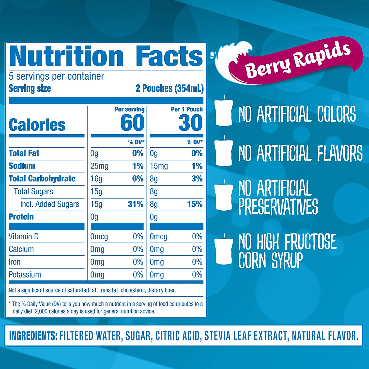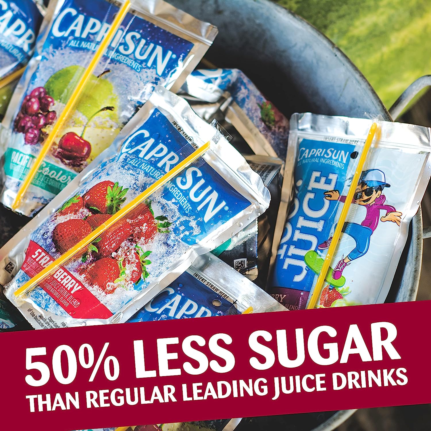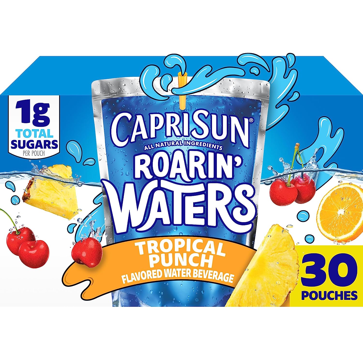 Capri Sun Roarin' Waters Naturally Flavored Fruit Punch Wave Water Beverage makes hydration easy and flavorful with a refreshing ready to drink beverage you can take anywhere. Natural fruit punch flavor adds a fruity touch to thirst-quenching water. These 10 count boxes of fruit punch naturally flavored water for kids are made without artificial colors, flavors or preservatives and no high fructose corn syrup, so you can feel good about serving it to your family. Each 6 fluid ounce drink pouch contains 50% less sugar than the average leading fruit juices (per 6 fluid ounces, this product has 8 grams of sugar; fruit juices 20 grams of sugar). Capri Sun makes it easy to take this berry drink along on all your adventures.