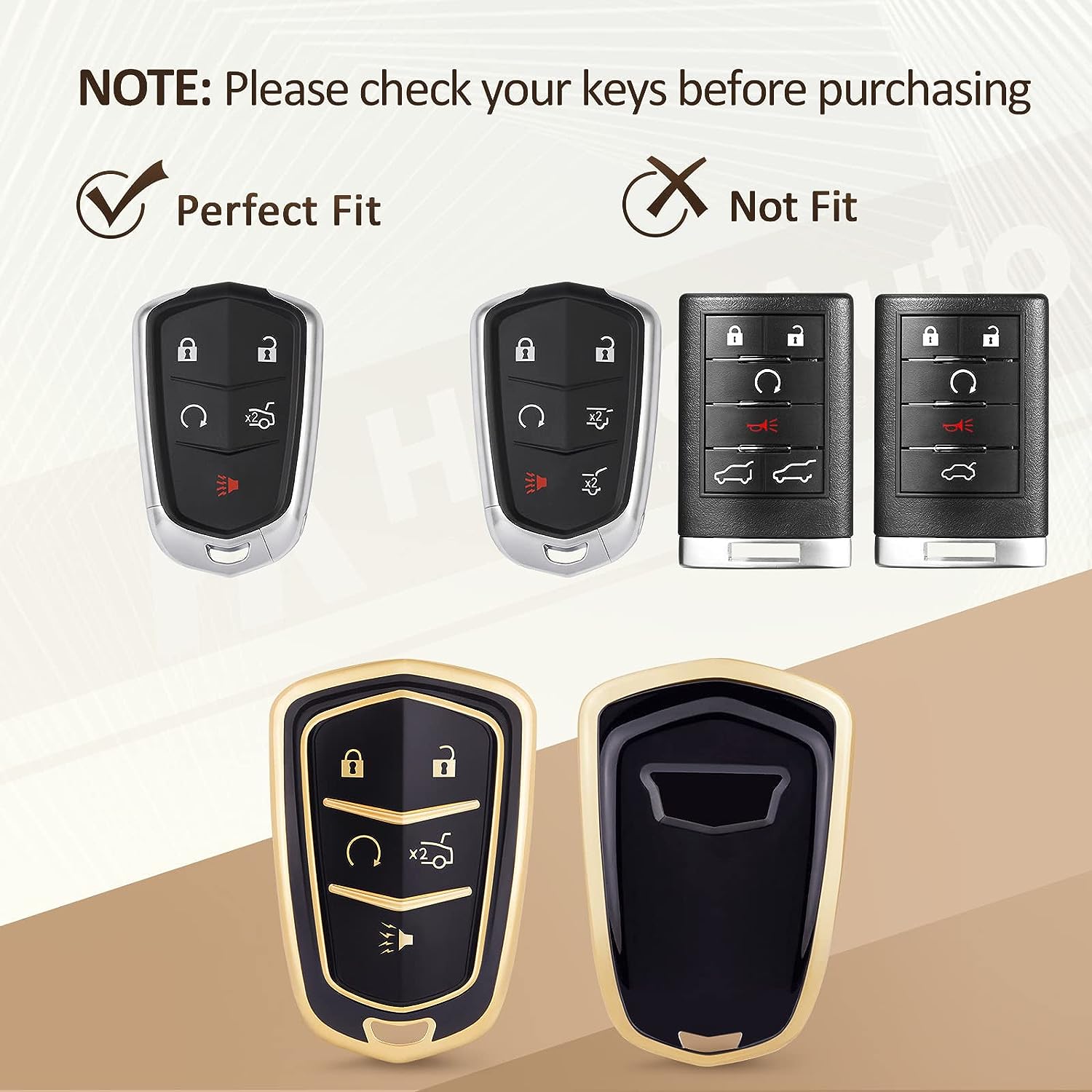 • 🍉【Must Read】🍉 Just a replacement KEY SHELL, not OEM one. All buttons function are the same as the original Cadillac ATS CTS key fob cover SRX XTS CT6 XT5 Escalade replacement key fob. Each HelloAuto key has passed strict quality inspection. Please check the compatibility carefully before purchasing.