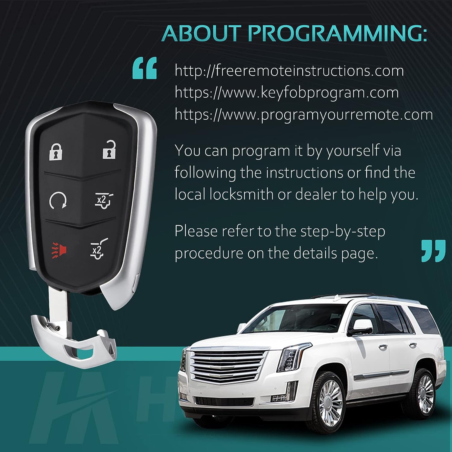 • 🍉【HelloAuto Care】🍉 A 6+1 MONTHS support For Cadillac ATS CTS SRX XTS CT6 XT5 Escalade key fob shell. If you have any questions about this cadillac key fob, please let HelloAuto team know at first to let us provide a solution within 24 hours.