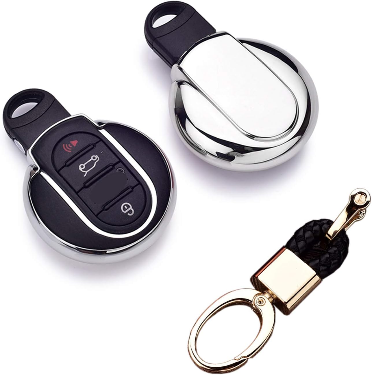 Royalfox(TM) Luxury 3 4 Buttons Soft TPU Smart Remote Key Fob case Cover for BMW Mini Cooper F54 F55 F56 F57 F60,with Keychain (Blue)