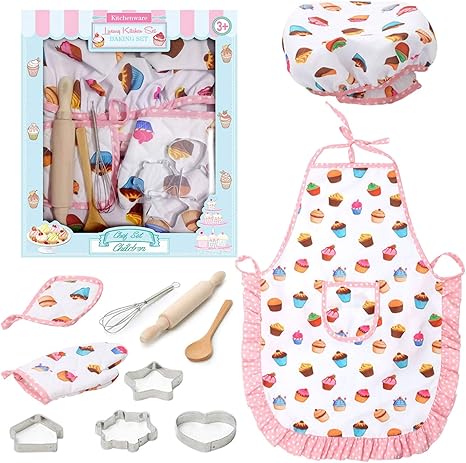 3 otters 11Pcs Kids Cooking and Baking Chef Set, Halloween Toddler Dress Up & Pretend Play Dress Up Clothes for Kids Ages 3-12, Kitchen Toys with Kids Aprons for Girls, Complete Cooking Sets