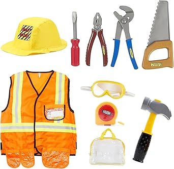 Construction Worker Costume Kids Dress Up Role Play Pretend Worker Costume Kits for Halloween