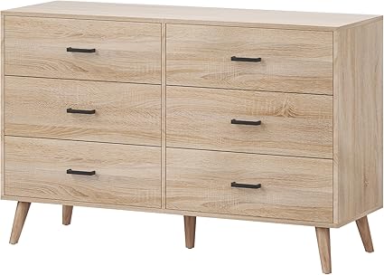 Bigbiglife Wood Dresser for Bedroom, 6 Drawer Dresser with Metal Handles, Mid Century Modern Dresser Double Chest of Drawer (Light Oak)