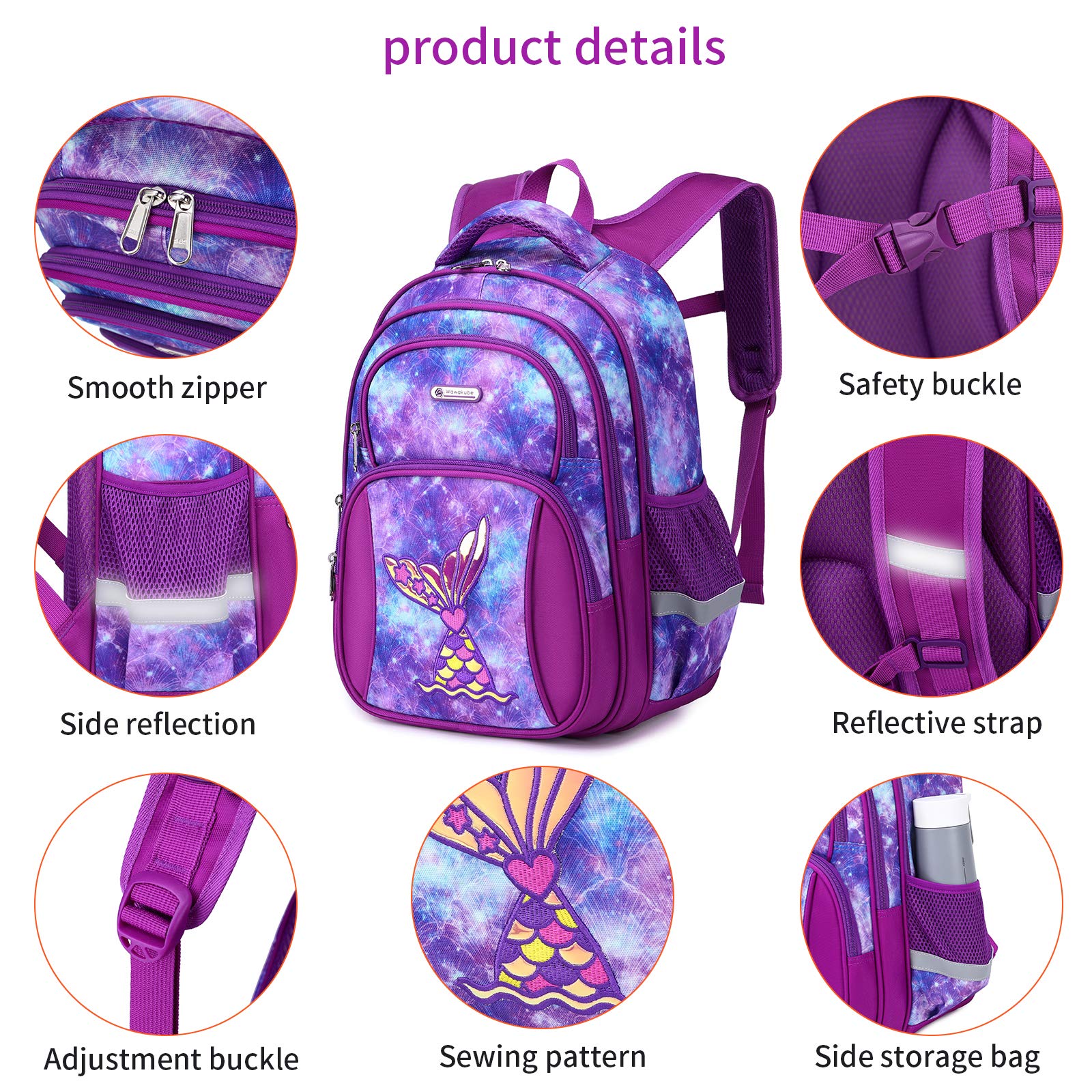 Details: Sewing Pattern School Backpacks for Boys and girls are sparkly, colorful & beautiful. Every kids loves it. A fashionable girls/boys bag constructed with high quality Polyester and Oxford Cloth, sturdy yet lightweight. It will not add extra weight to kids' shoulders and back. A wonderful must have gift as school daily accessory. Features: Stylish Constructed with Sewing Pattern, this back pack looks super cute. Be ready to get compliments from people for your unique new bag. Sturdy Durable Polyester construction for long lasting. Premium SBS grade zip construction and zippers, long lasting hardware quality. Well made by good workmanship. Comfortable Ultra lightweight for daily carrying bag and school book bag. Padded back panels and adjustable, padded "S" shaped shoulder straps offer for a perfect fit. Roomy One Main compartment large enough to hold all of your supplies. Interior able to contain a 15.6" laptop, iPad and full size binder and A4 Books. Front zip compartments for all kinds items, like pencil case, book, iPad, cards, tissues, etc. Two exterior side slip pockets for large water bottle and umbrella. Versatile Ideal for school use as book bag and schoolbag, also service as casual daily pack for community work, weekend hang around, travel, gyms and hiking etc. Item Specifications: Materiel: Polyester + Oxford Cloth Net Weight: 1.2 b Size: 16 x 13 x 5 inches Package Included: 1 * Kids School Backpack