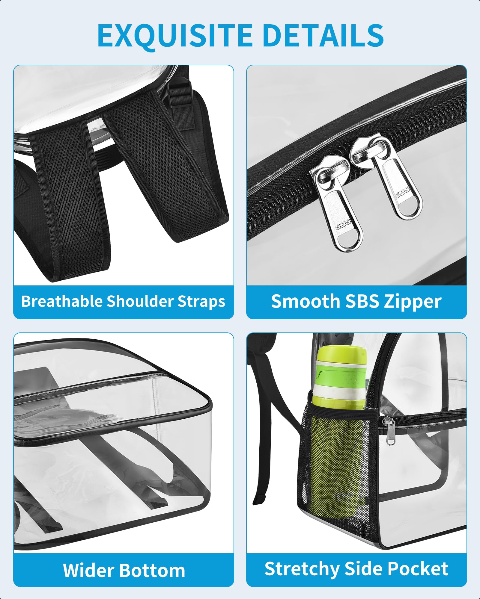 Details: Brand: LEWEREI  Item type:  Clear Small Backpack Weight:  256g/0.56 lb Color: Clear with Black or Blue color trim