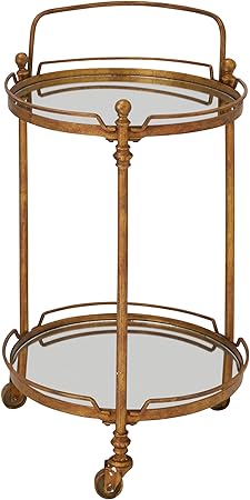 Deco 79 Metal Round Bar Cart with Wheels and Handle, 19" x 18" x 31", Brass