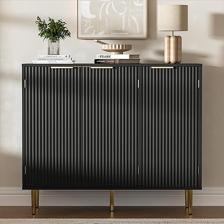 40" Buffet Sideboard Cabinet with 3 Doors, Kitchen Storage Cabinet with Golden Handles & Legs, Modern Accent Cabinet with Adjustable Shelves, Coffee Bar Cabinet for Kitchen, Dining Room, Black
