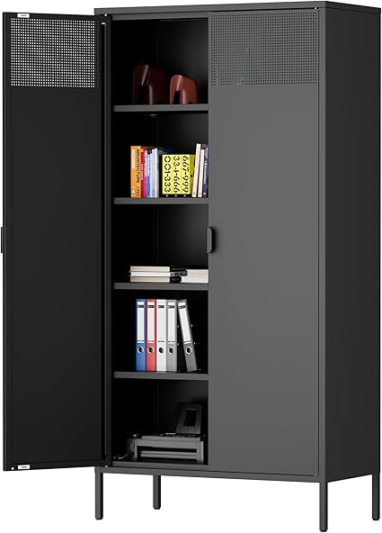 71 Inches Black Metal Storage Cabinet with Doors and Shelves, 5 Tier Kitchen Pantry Cabinet, Metal Cabinet for Home Office, Dinning Room, Laundry Room, Living Room, Bathroom and Utility Room