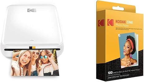 Kodak 2"x3" Premium Zink Photo Paper (100 Sheets) & Step Wireless Mobile Photo Mini Printer (White) Compatible w/iOS & Android, NFC & Bluetooth Devices
