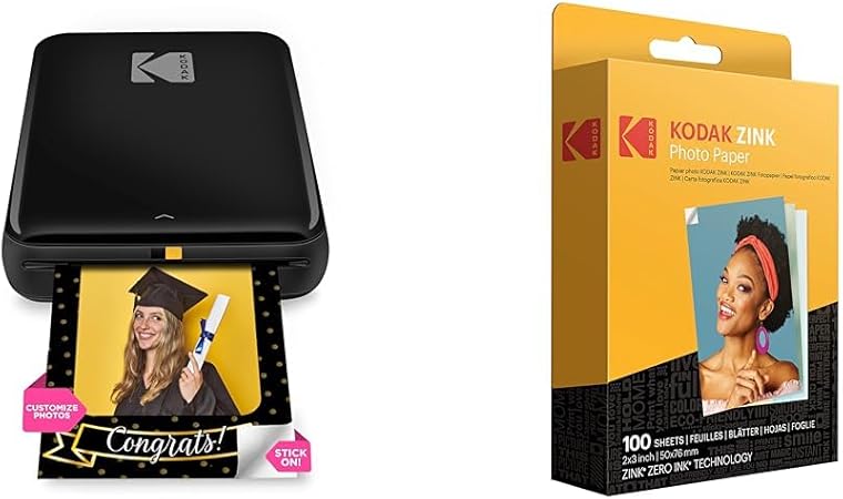 Zink Kodak Step Wireless Mobile Photo Mini Printer (Black) Compatible w/iOS & Android, NFC & Bluetooth Devices & 2"x3" Premium Photo Paper (100 Sheets)