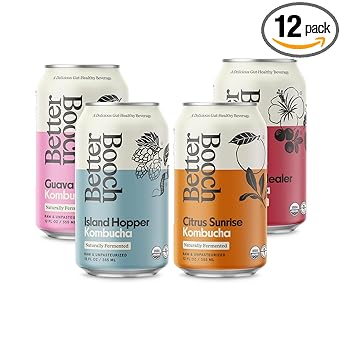 Better Booch Organic Kombucha - Probiotic & Antioxidant Rich Raw Sparkling Tea - Low Sugar, Vegan, Gluten Free - Gut Healthy Active Cultures, 12 Fl Oz Cans, 12-Pack (Tropical Variety Pack)