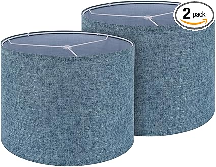 Drum Lamp Shade Set of 2, 13x13x10 inches Easy Assembly Lampshades for Table Lamp, Bedside Lamp, Floor Lamp, Spider Fitter (Blue)_Ñ_