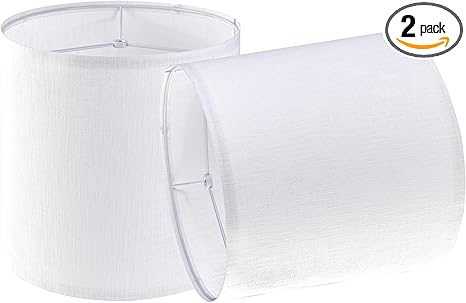 Samll Lamp Shades Set of 2 Drum White Texture Lampshades for Table Lamps Wall Lamps-10"Ջ 10"Ջ 10" (Spider), Required Assembly-Cylindrical Lampshade for Pendant Light/Chandelier-By GO&SO