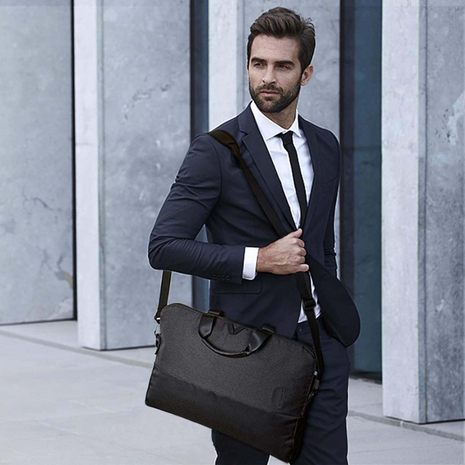 • LONG-LASTING MATERIAL- Constructed with durable, water-resistant polyester and RPET (recyclable material); simplicity look can serve as a briefcase for men as well as lightweight laptop carrying case