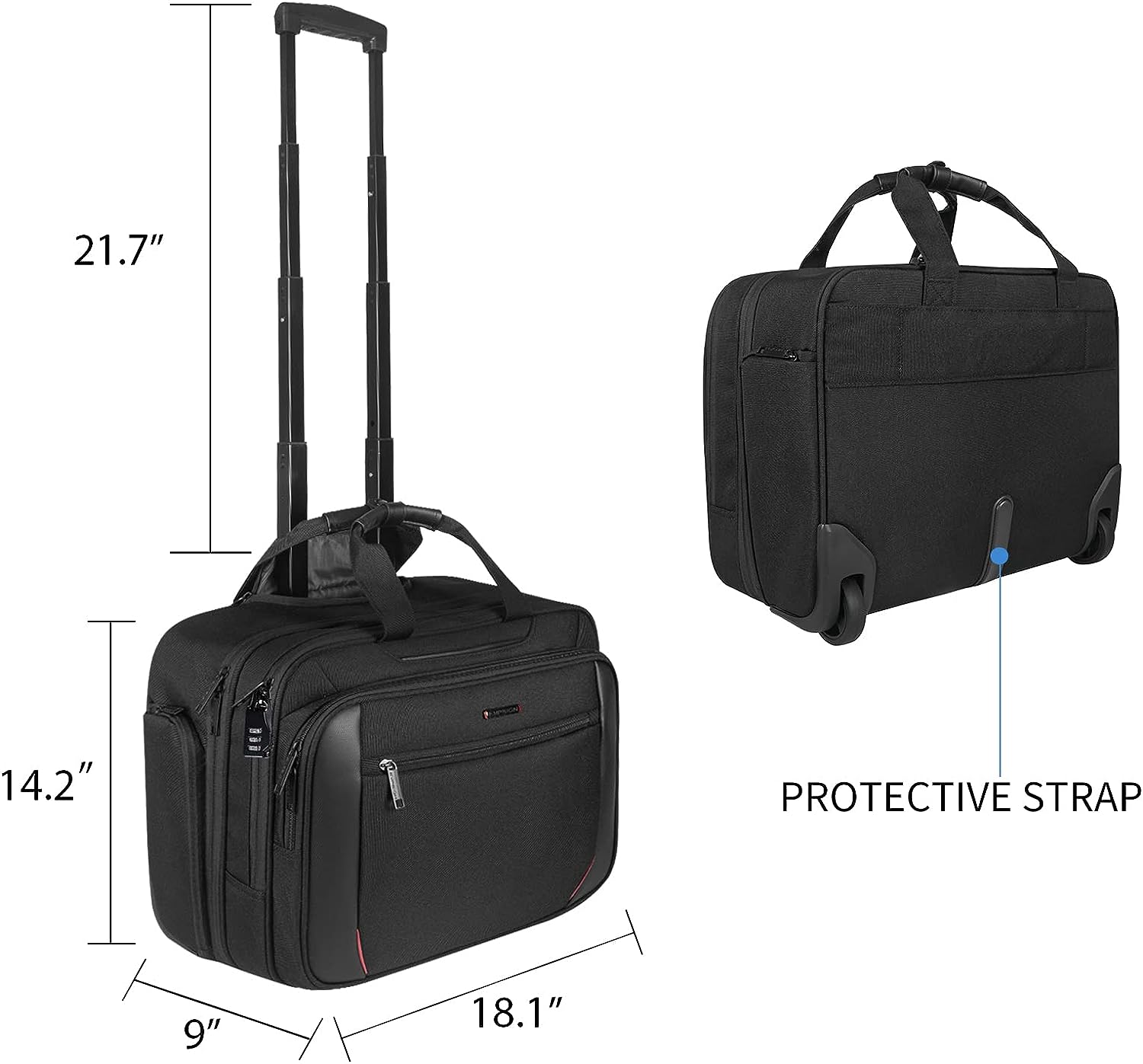 EMPSIGN Rolling Briefcase Laptop Bag,17.3" Computer bag with wheels, Water Repellent Travel Roller Underseat Bag with RFID Blocking Pocket,Overnight Rolling Work Bags for women/men -Black