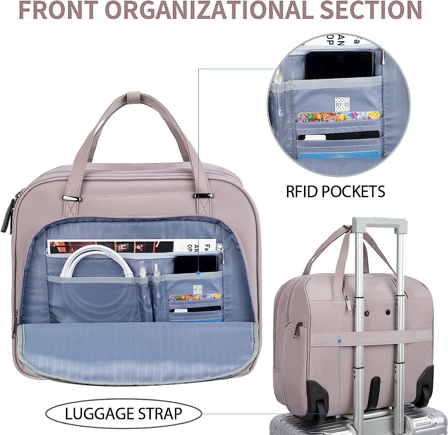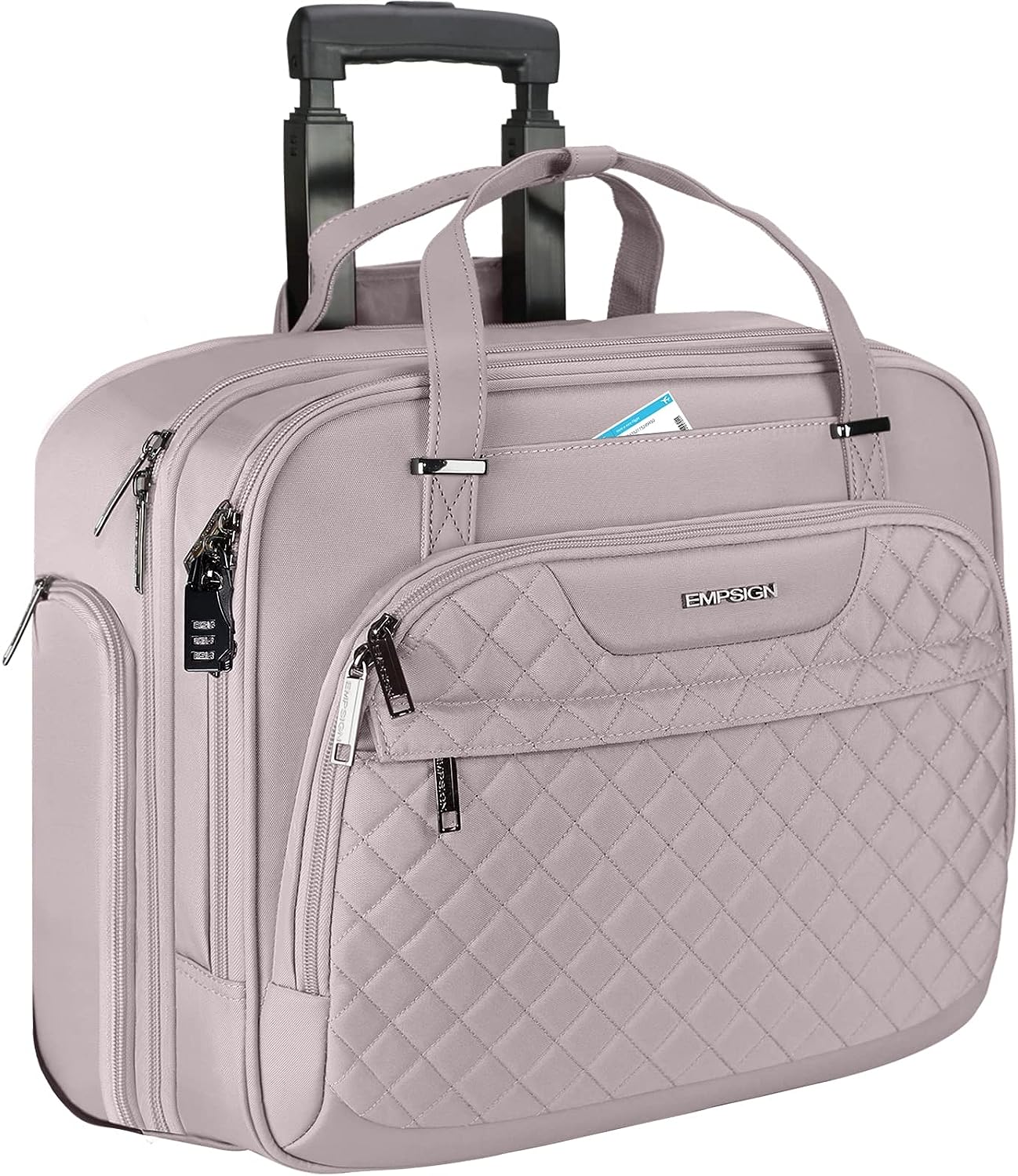 EMPSIGN Rolling Laptop Bag for Women with Wheels, Rolling Briefcase Women Fits Up to 15.6 Inch Laptop Briefcase on Wheels, Water-Repellent Overnight Rolling Computer Bag with RFID Pockets, Grey Pink