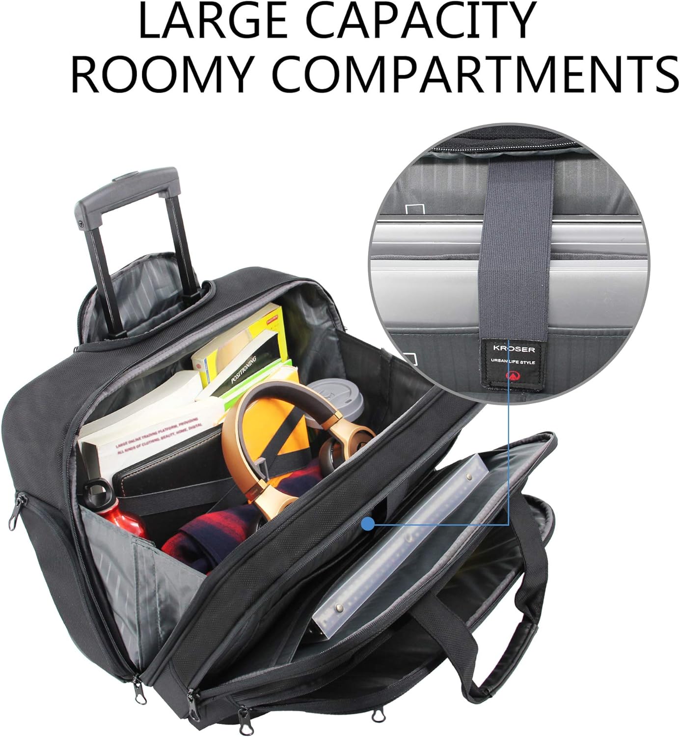 • GREAT CONVENIENCE: A well-knitted “luggage strap” is quite easy to fix the rolling laptop bag on the trolley of your luggage, making your journey and business travelling more convenient.