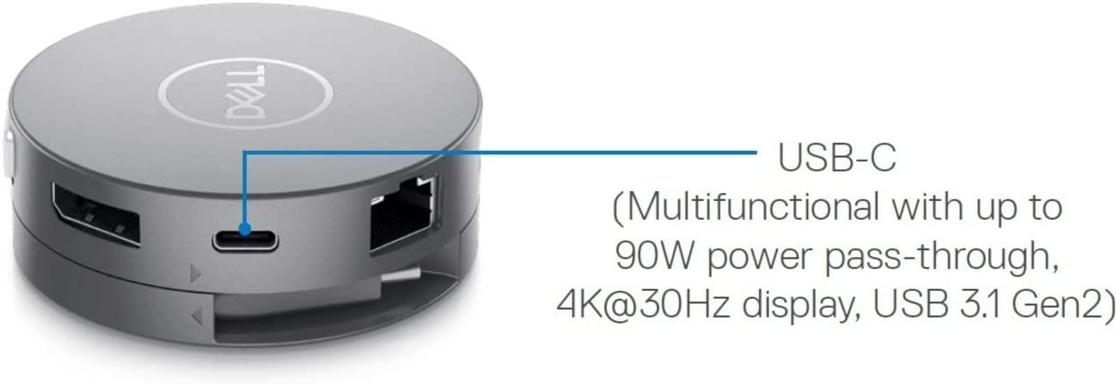 The Dell 7-in-1 USB-C Multiport Adapter is a compact and portable multiport 7-in-1 adapter that can connect to just about any device you have. Its downstream USB-C port supports power pass through and is ideal when your laptop does not have any more USB-C charging ports.