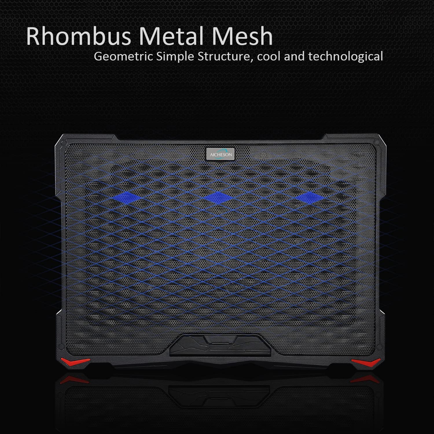 AICHESON Laptop Cooling Pad 5 Fans Up to 17.3 Inch Heavy Notebook Cooler, Blue LED Lights, 2 USB Ports, S035, Blue-5fans