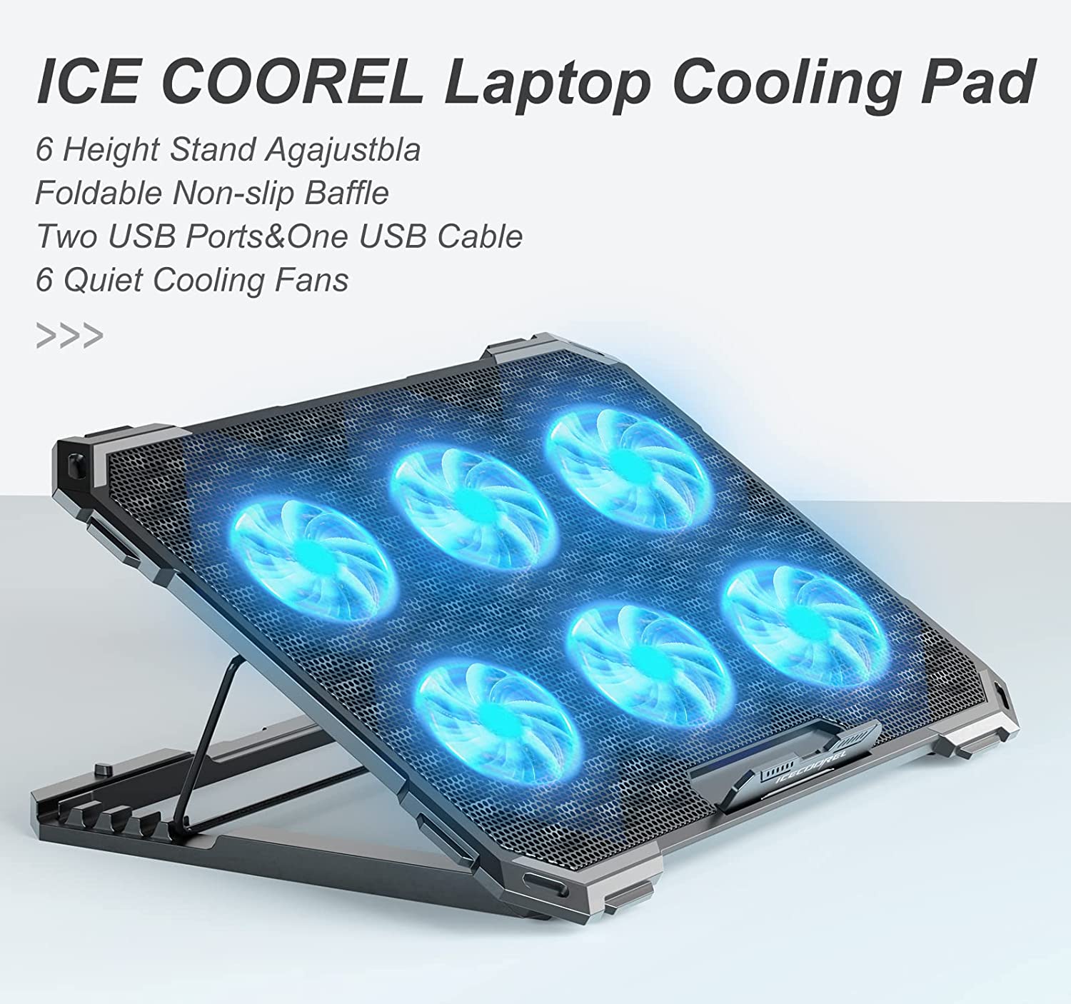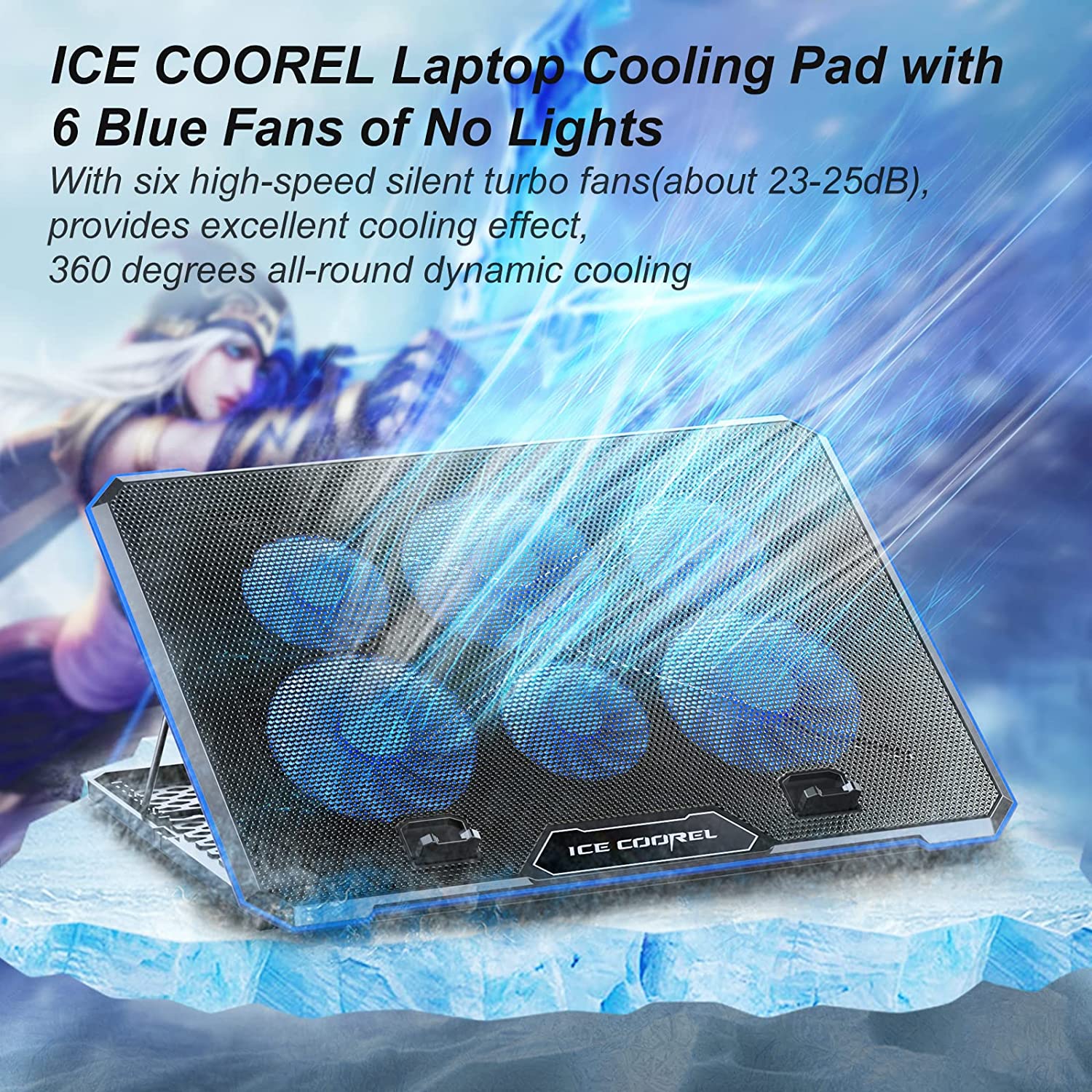 ICE COOREL Laptop Cooling Pad with 6 Cooling Fans, Laptop Fan Cooling Pad for 14-17 Inch, Gaming Laptop Cooler Stand with 6 Height Adjustable, Notebook Cooler Pad with Two USB Port [2022 Version]