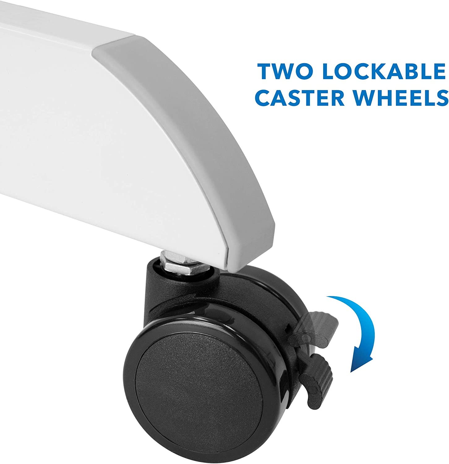 • LARGE SPACE SAVING SURFACE: The large 23.6" x 20.5" surface area on our adjustable laptop desk cart provides generous space for a laptop, keyboard, and mouse. The white finish is smooth, heavy-duty, and moisture resistant (TSCA Title VI compliant).