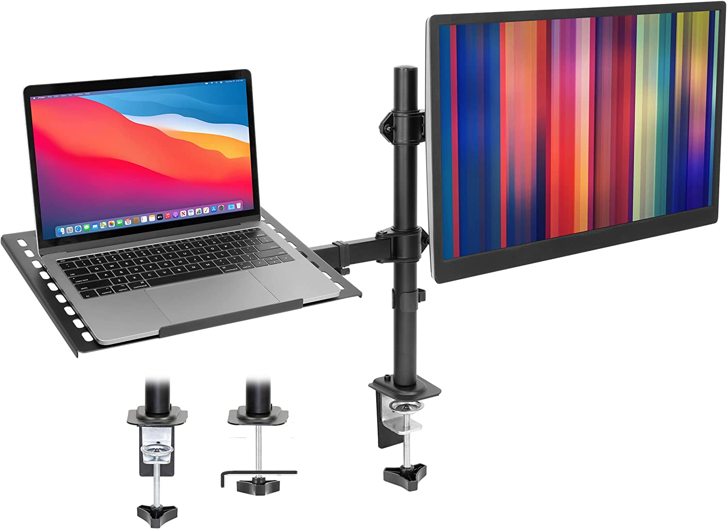 Mount-It! Laptop Desk Mount with Monitor Arm | Dual Laptop and Monitor Stand with Clamp and Grommet Base and Ventilated Tray